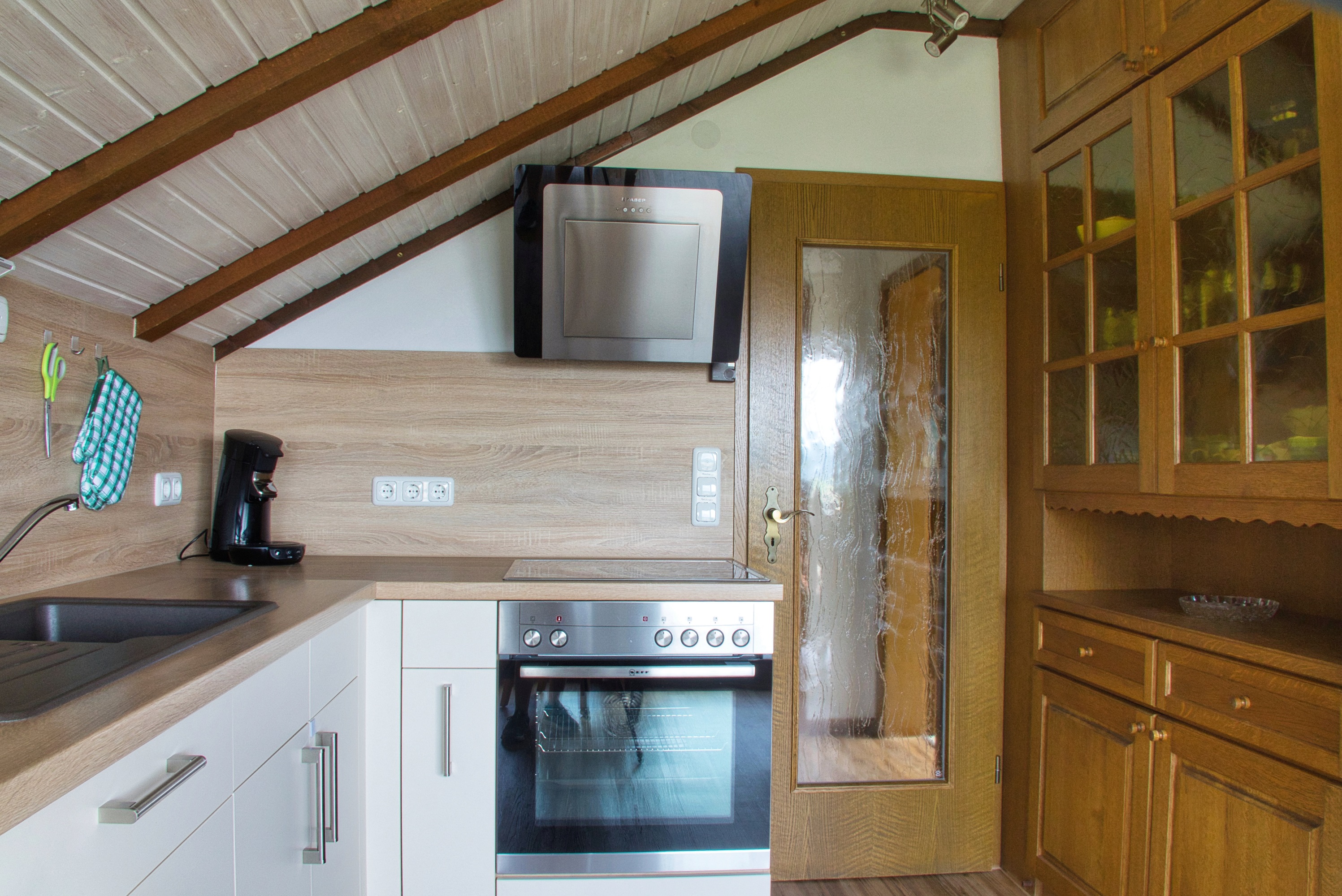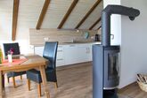 - gemütlicher Wohnraum mit Küche, Esstisch und Sofaecke