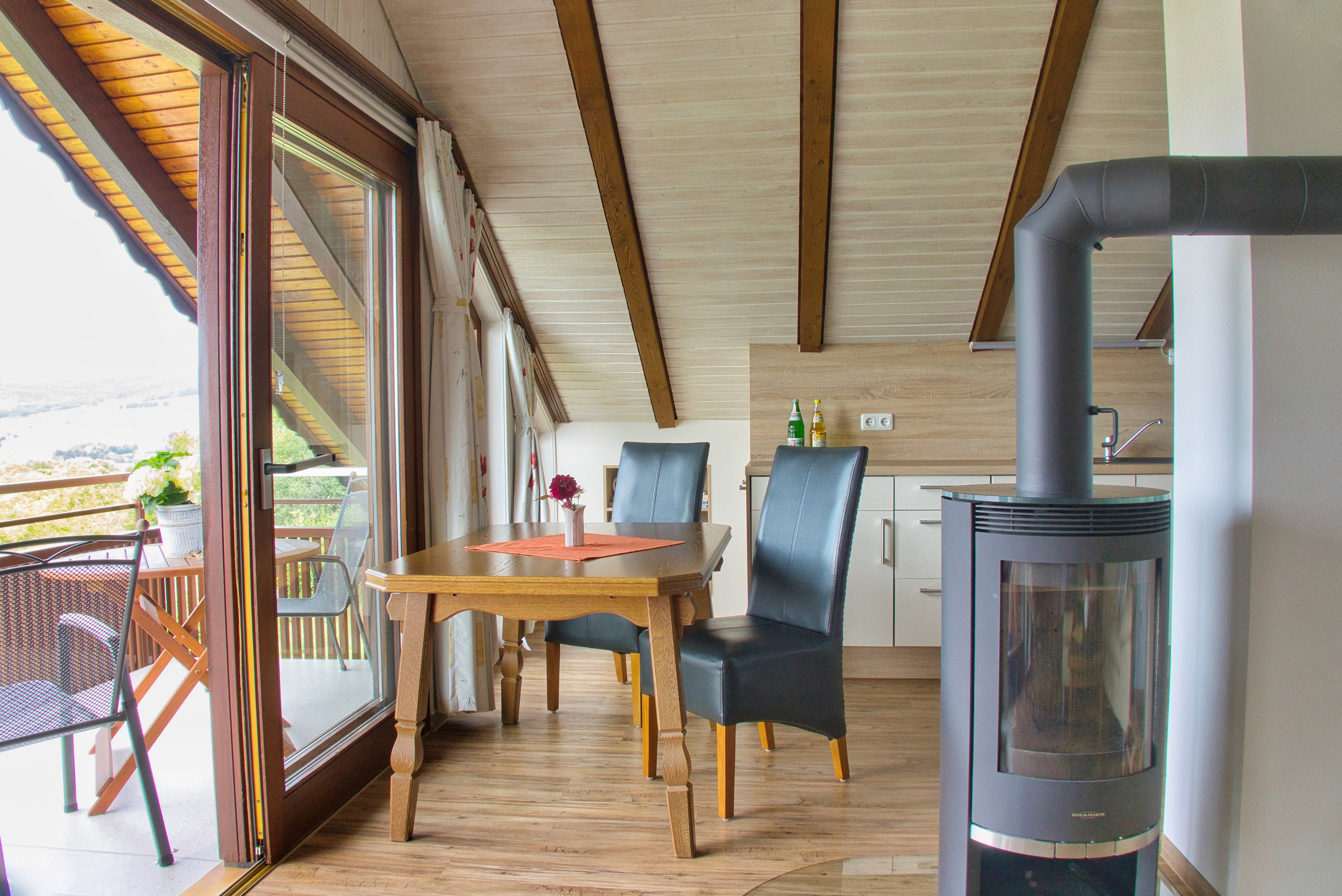 Die Wohnung kann in der kalten Jahreszeit für eine wohlige Wärme nachhaltig mit einem Kachelofen beheizt werden.