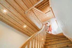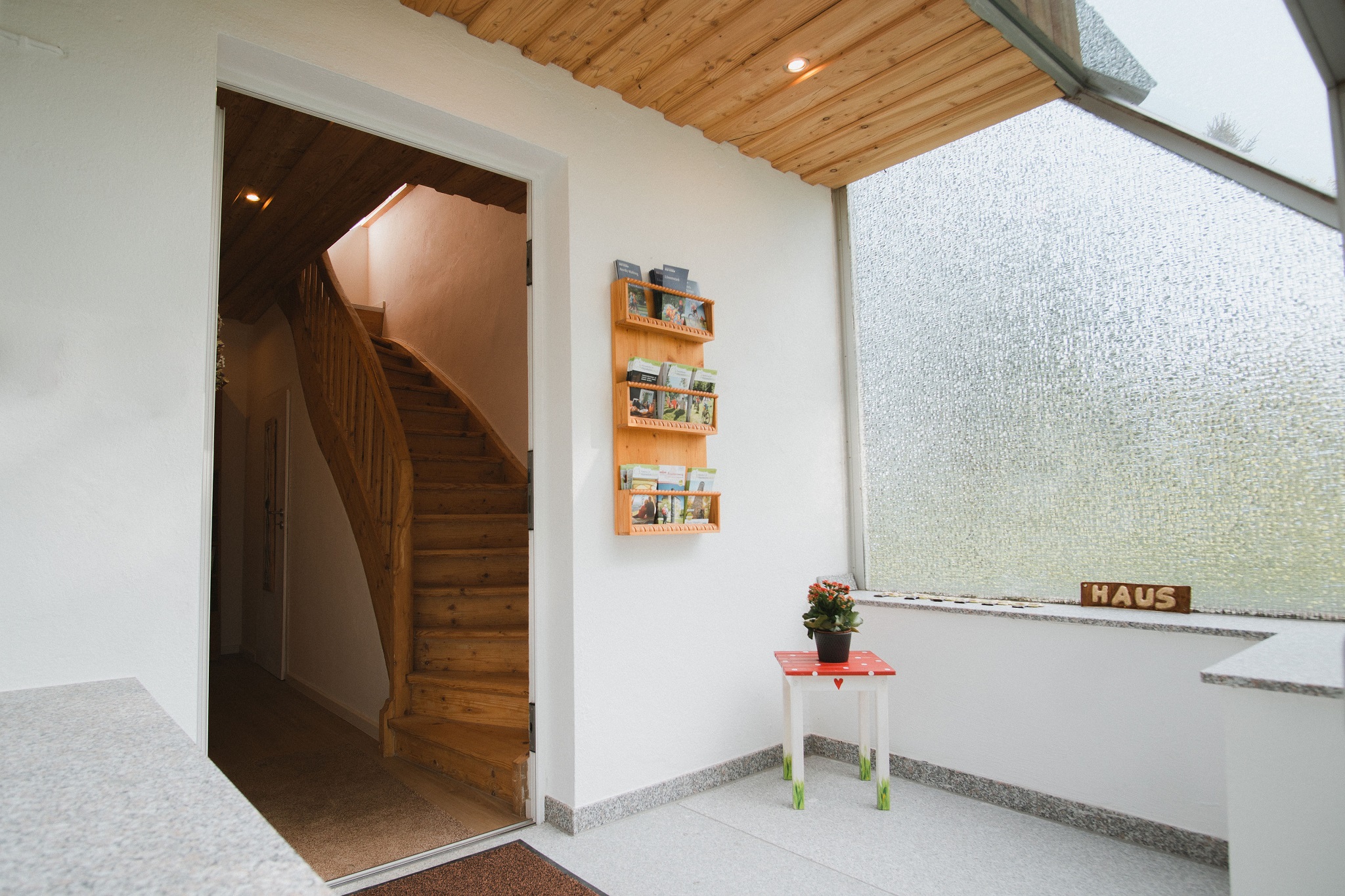 Die Frankenwald-Oase 2 erreicht man über die liebevoll abgebeizte Holztreppe des Ferienhauses.