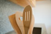 Die Küchenzeile ist von einem Schreiner aus Ulmenholz angefertigt.