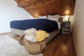 Im Erdgeschoss befindet sich unser Master-Bedroom mit einem 1,80mx2m Bett und angeschlossenem frisch renovierten Badezimmer mit Badewanne. Das WC ist extra. Mit Blick auf den Rosengarten, moderner aber gemütlicher Einrichtung und Fichtenholzboden ist dieses Schlafzimmer der Herzstück der Schlafzimmer in unserem Haus.