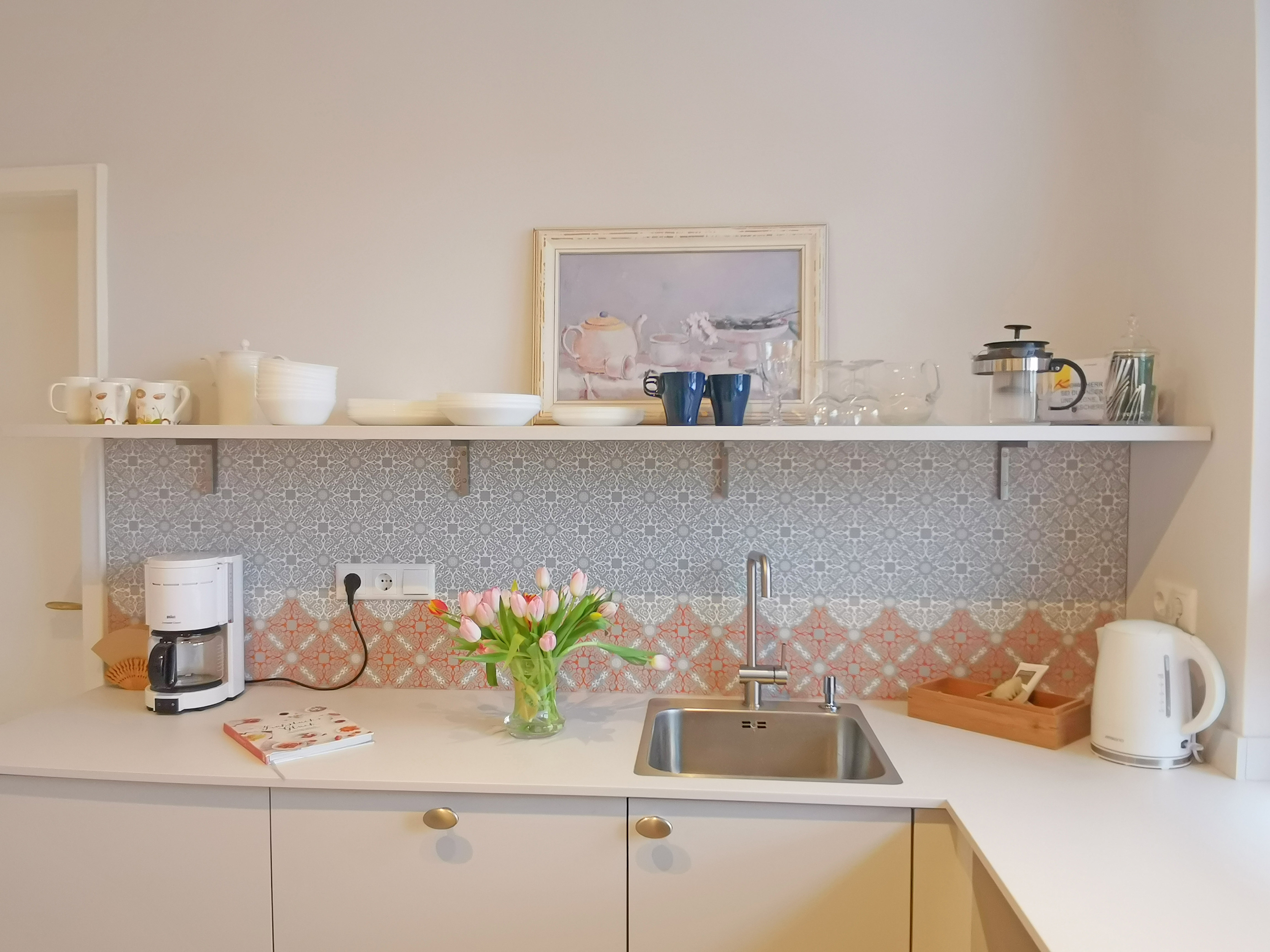 unsere moderne, gut ausgestattete Küche verfügt über alles was Sie brauchen, um einen essensreichen Urlaub zu verbringen. Spülmaschine, E-Herd, Kühlschrank und Geschirrtücher sind vorhanden. Die Speisekammer dient als Erweiterung des Kühlschranks aufgrund seiner besonderen Bauweise.