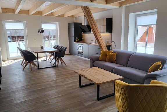 Die neue, modern eingerichtete Ferienwohnung befindet sich im Haupthaus und bietet auf 2 Etagen Platz für bis zu 5 Personen.