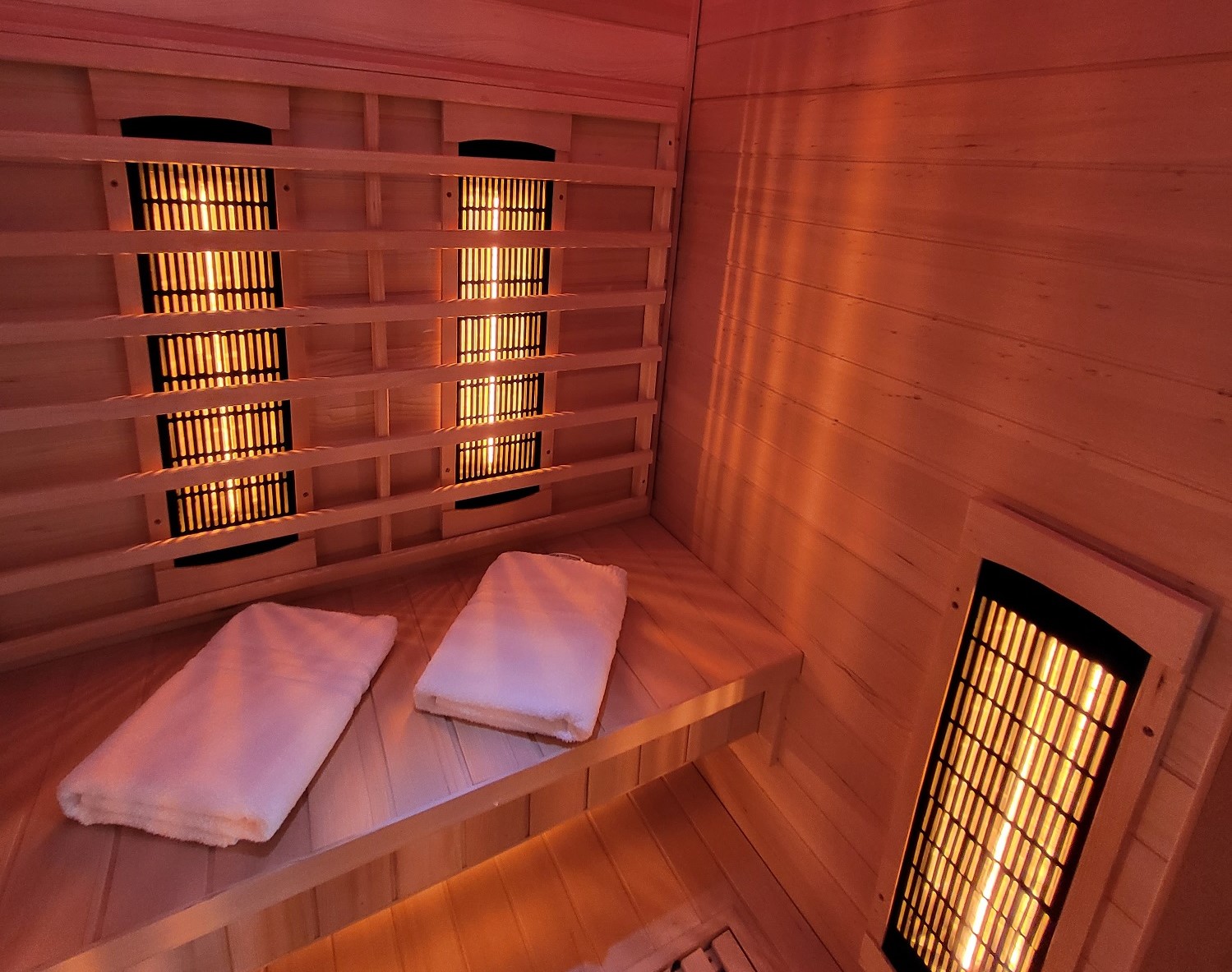 Für das besondere Wohlfühlerlebnis befindet sich im Scheunengebäude ein kleiner Wellnessbereich mit Sauna, Infrarotkabine, Relaxliegen und großer Whirlwanne für 2 Personen. Vom Ruhebereich aus haben Sie Zugang zu einer kleinen Privatterrasse mit Sonnenliegen auf der Sie entspannen können.