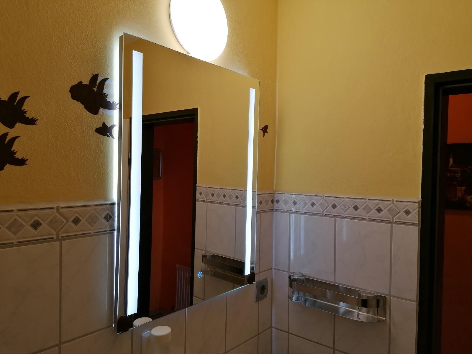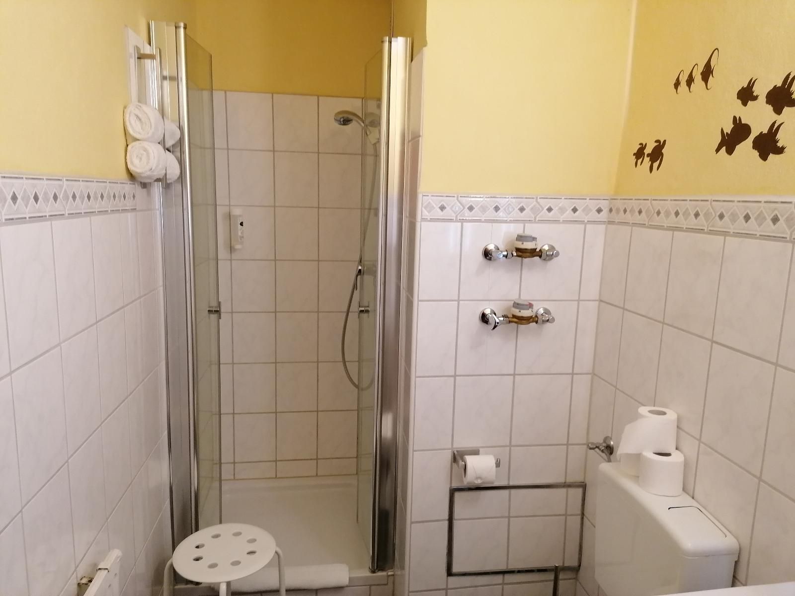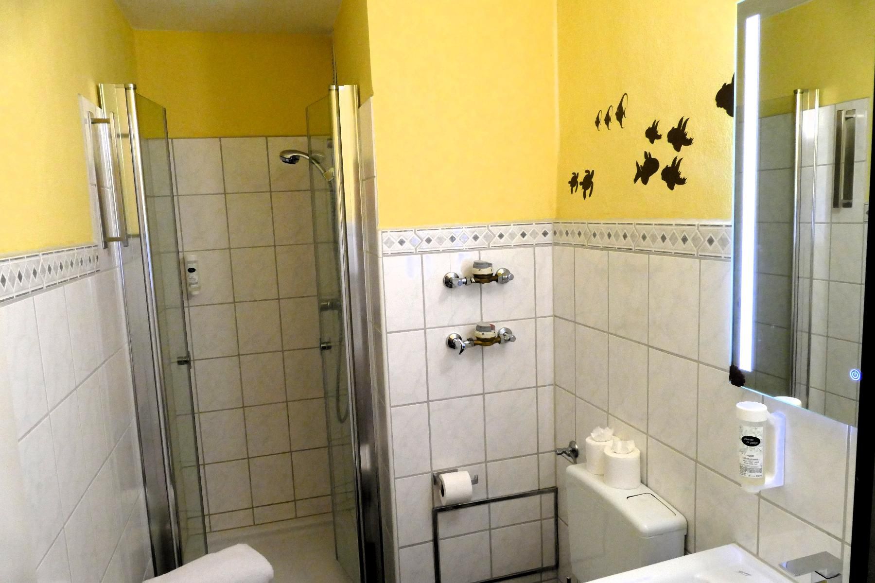 Das Bad verfügt über Dusche/WC, Föhn, Kosmetikspiegel, Spiegelschrank.