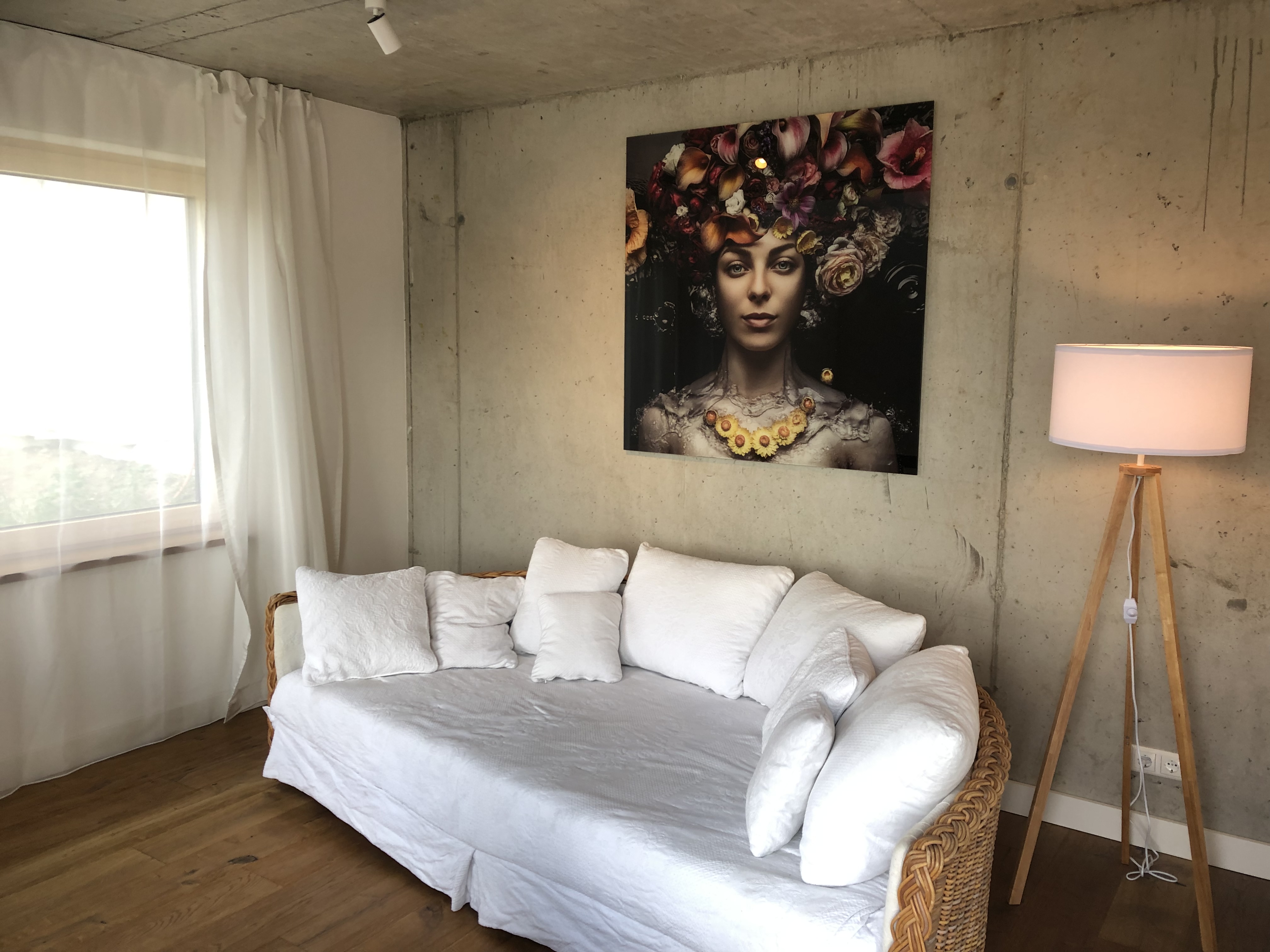 Das Schlafzimmer ist hell und ruhig und bietet vom Bett aus einen herrlichen Blick auf den Ort. Getrennt durch eine Türe befindet sich das zweite Schlafzimmer mit Kleiderschrank. Das Bad befindet sich auf der gleichen Etage mit Blick auf Riedenburg und die Rosenburg. Eine Schlafcouch bietet Platz für weitere 2 Personen.
