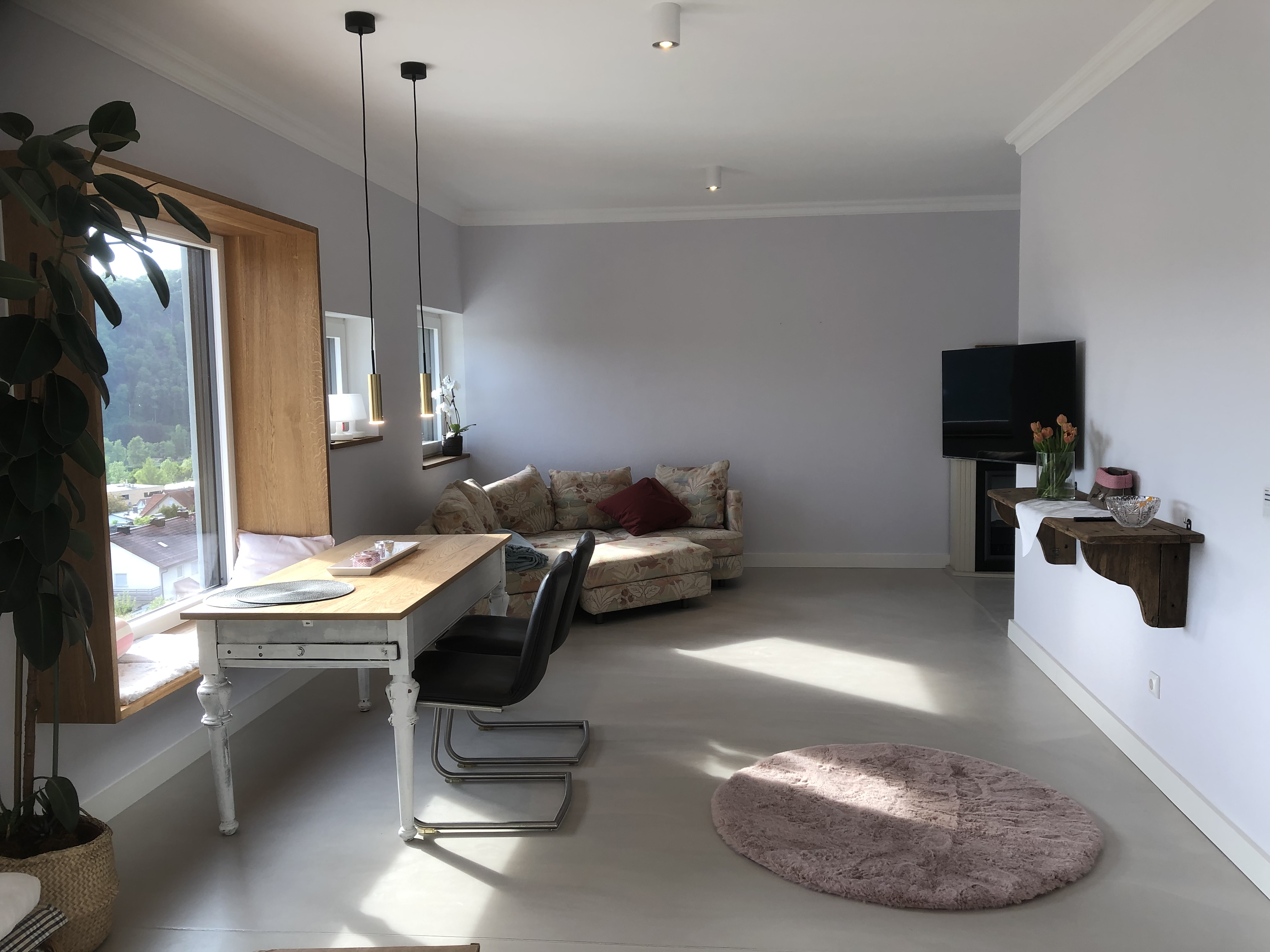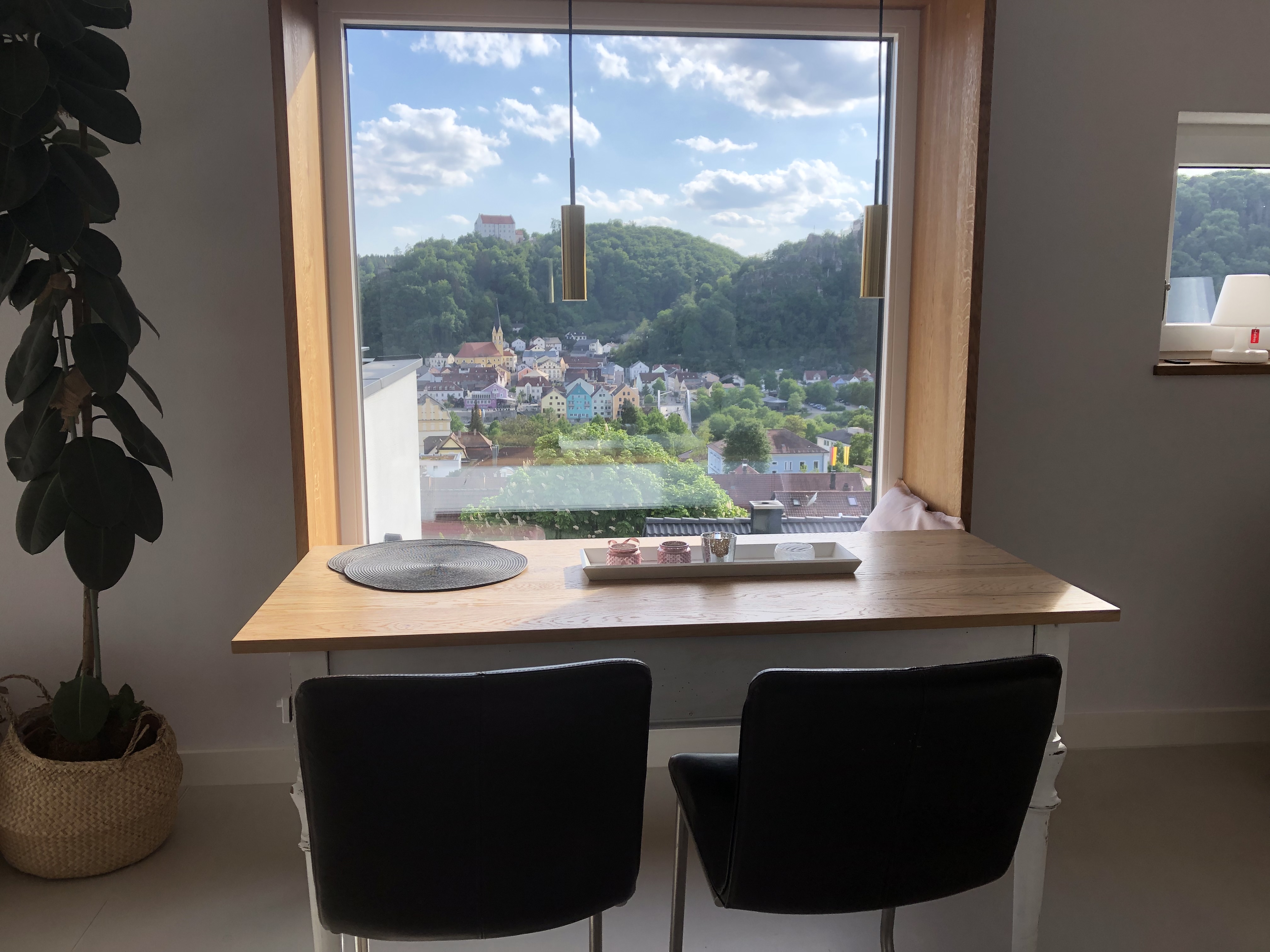 Eine Ferienwohnung mit herrlichen Blick auf Riedenburg. Die Wohnung bietet ein wunderschönes Ambiente: fugenloser Boden, hohe Räume, Natursteinfliesen und ausgewähltes Mobiliar. Ein geräumiger Wohn-und Essraum bildet das Herzstück dieser wunderbaren Ferienwohnung.