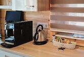 Geschirrspüler, Geschirr, Besteck und Kaffeevollautomat). Das Badezimmer ist