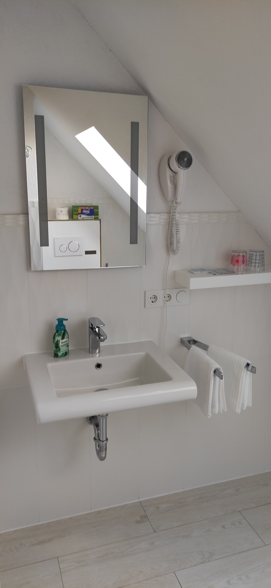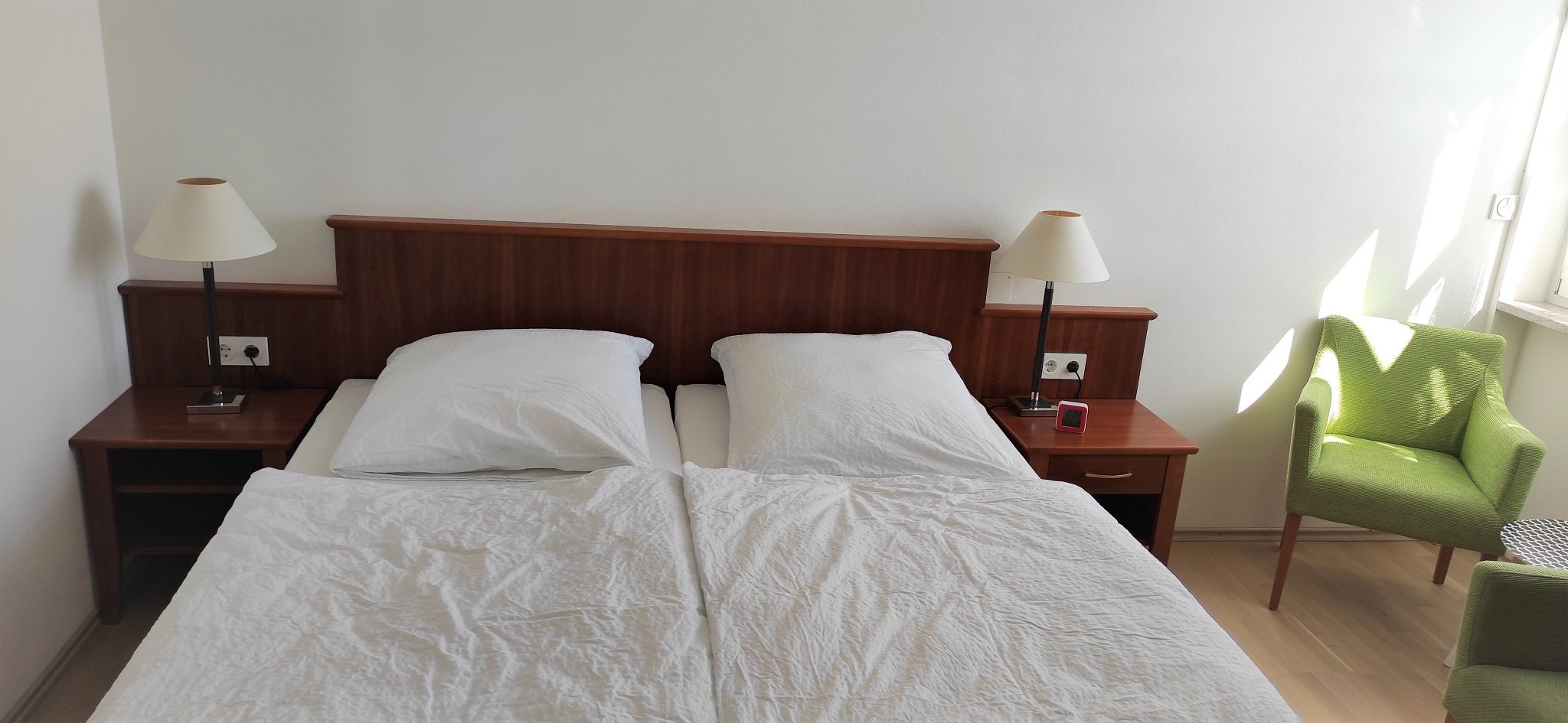 Unsere Zimmer sind modern eingerichtet und verfügen über ein Doppelbett, Parkettboden sowie ein eigenes Badezimmer. Im Badezimmer gibt es eine Dusche, ein WC sowie ein Waschbecken und einen Föhn. Alle Badezimmer verfügen über ein Fenster. Es gibt einen Aufenthaltsraum/Kaffe-Küche. Diese kann von allen Gästen genutzt werden. Handtücher und Bettwäsche sind vorhanden. Alle Zimmer sind Nichtraucherzimmer. Die Zimmer sind teilweise nur über etliche Treppenstufen zu erreichen. Wlan steht kostenfrei zur Verfügung, auch Parkplätze sind direkt am Haus vorhanden.