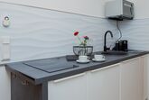 In allen Appartements befindet sich eine voll ausgestattete Küche mit Induktionsherd, Kühlschrank, Mikrowelle/Grillkombination, Wasserkocher und Nespresso-Kaffeemaschine. Das schöne wertige Koch- und Essgeschirr bereitet Selbstversorgern Vergnügen und lässt keine Wünsche offen. In jedem Zimmer befindet sich ein großer SMART – TV.
