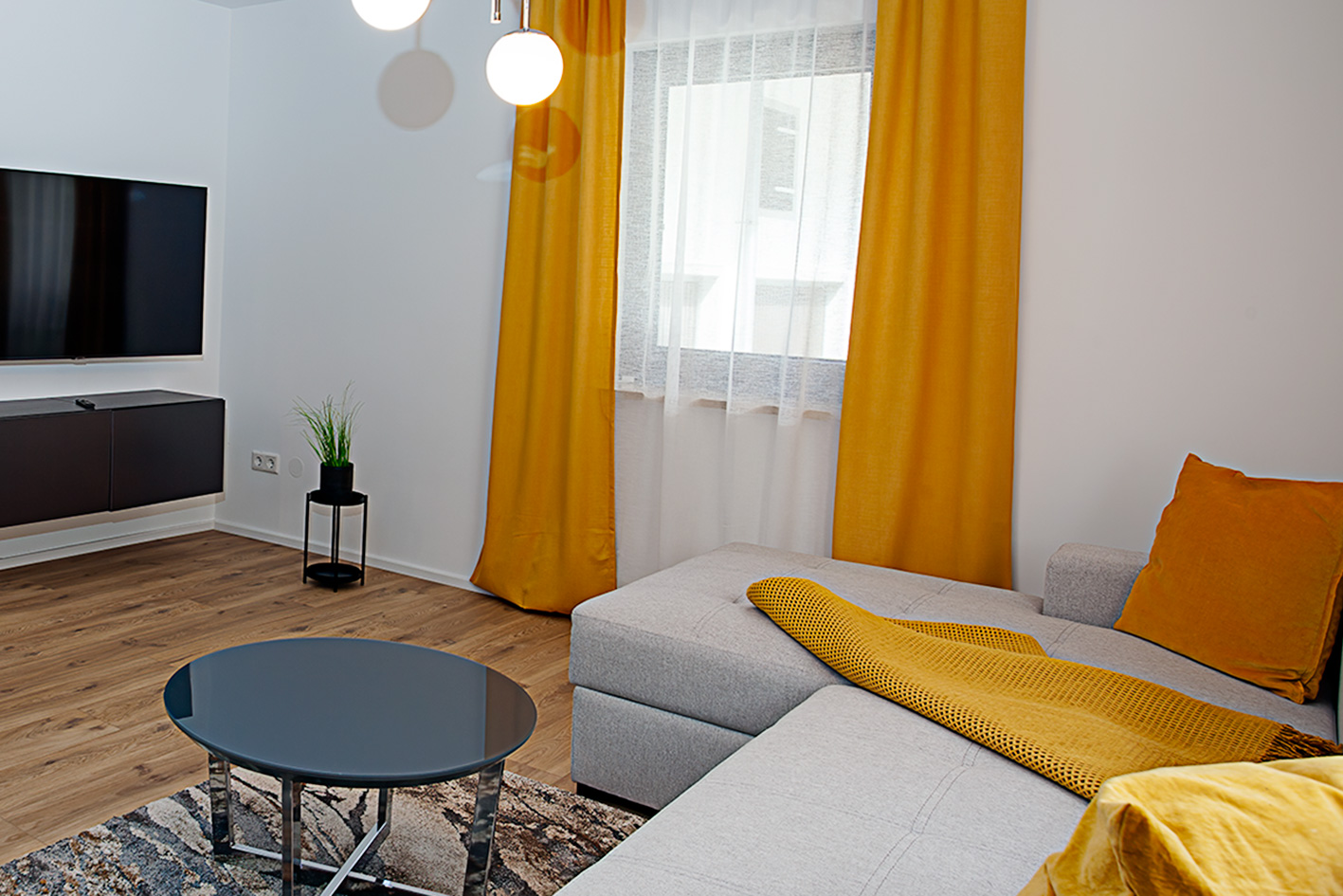 Zudem verfügen alle Wohnungen über ein, geräumiges Wohnzimmer und ein eigenes Bad mit Dusche.
