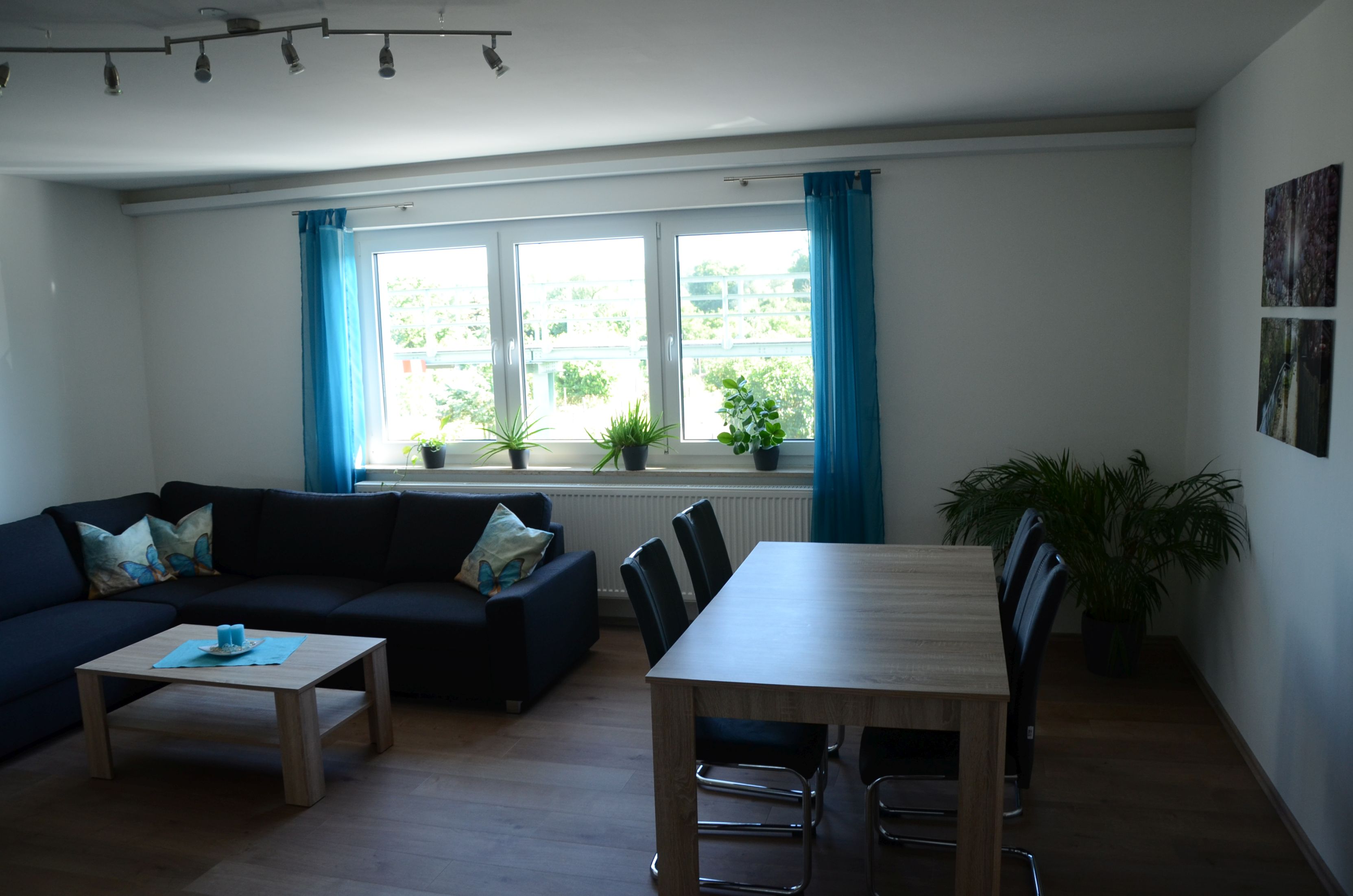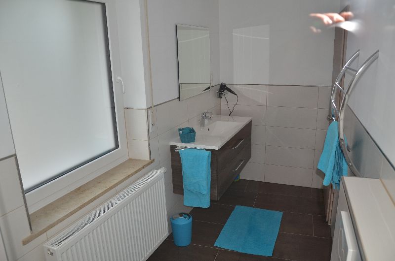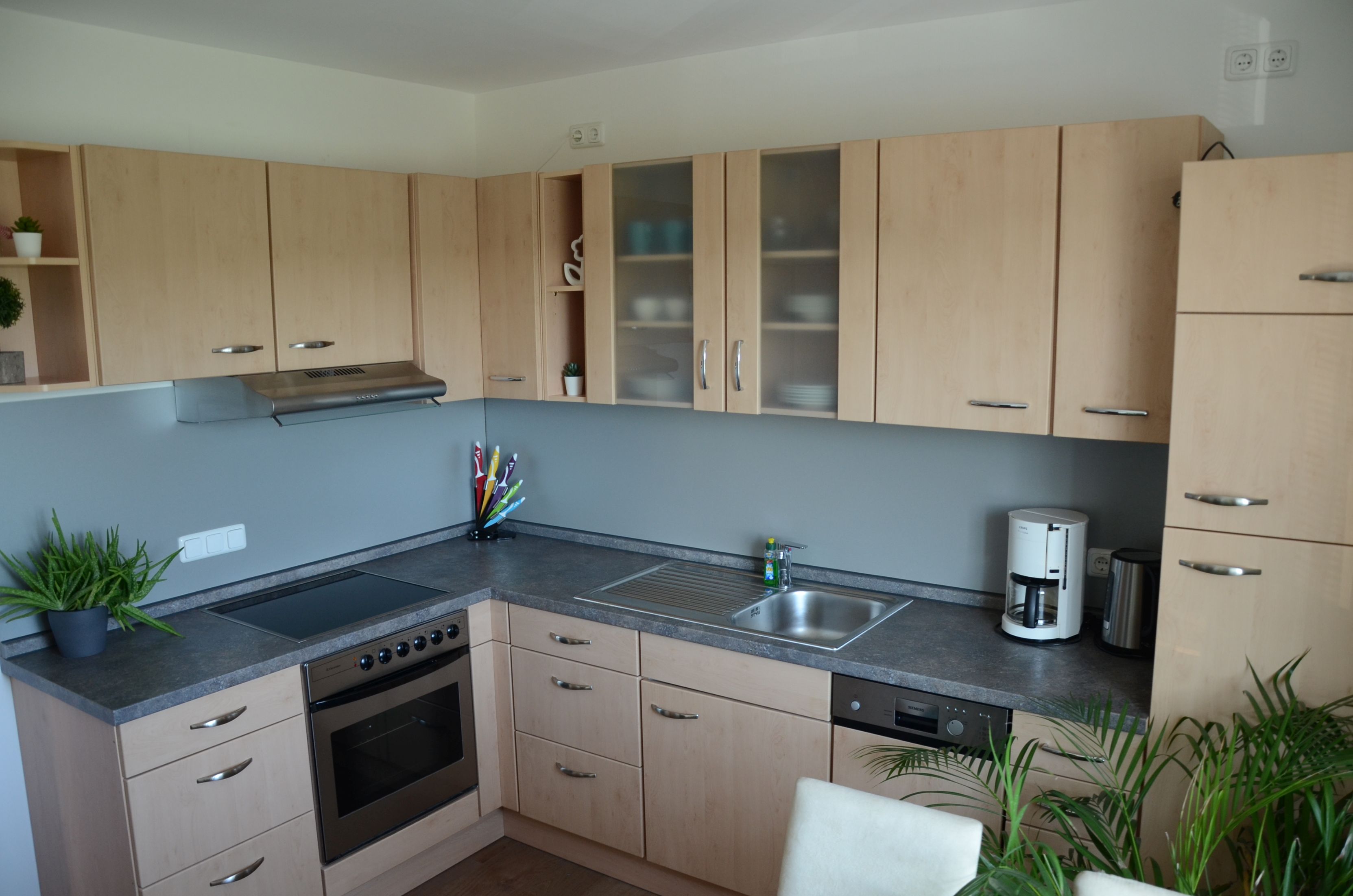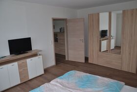 Unsere geräumige (ca. 80 qm große) Wohnung befindet sich im Obergeschoss des Hauses (daher leider nicht barrierefrei) und ist liebevoll, modern eingerichtet. Das Wohn-/Esszimmer ist ausgestattet mit einem großen LED-Fernsehgerät, einem geräumigen Sofa mit Ausziehfunktion und schönem Mobiliar/Dekoration. Das Schlafzimmer ist mit einem kleinen Flach-TV sowie Tresor ausgestattet und ist mit ca. 30 qm überaus geräumig. Die Küche ist vollausgestattet mit Kochecke, Backofen, Kühl-/Gefrierschrank und einer Spülmaschine und allen notwendigen Küchenutensilien. Im Bad finden sich eine begehbare Dusche, eine Toilette und ein moderner Waschtisch inkl. Föhn. Die Speisekammer .... die musste so übernommen werden - die spricht einfach für sich !!!