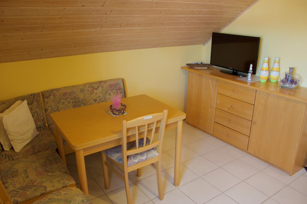 Die Ferienwohnung mit Terrasse bietet auf 45 Quadratmetern Platz für bis zu 4 Personen. Sie verfügt über 2 Schlafzimmer. Davon ist ein Schlafzimmer mit einem Doppelbett und das andere Schlafzimmer mit zwei Einzelbetten ausgestattet. Die Wohnküche ist mit Backofen, Kaffeemaschine, Geschirrspüler, Kühlschrank und Toaster voll ausgestattet. Das Badezimmer verfügt über Dusche, WC und Waschbecken. Das WLAN steht Ihnen während Ihres Aufenthaltes kostenfrei zur Verfügung. Bettwäsche ist ebenfalls im Grundpreis enthalten. Bitte beachten Sie, dass Handtücher nicht kostenfrei vorhanden sind. Für Räder und Sportgeräte bieten wir Ihnen gerne kostenfreie Abstellmöglichkeiten.