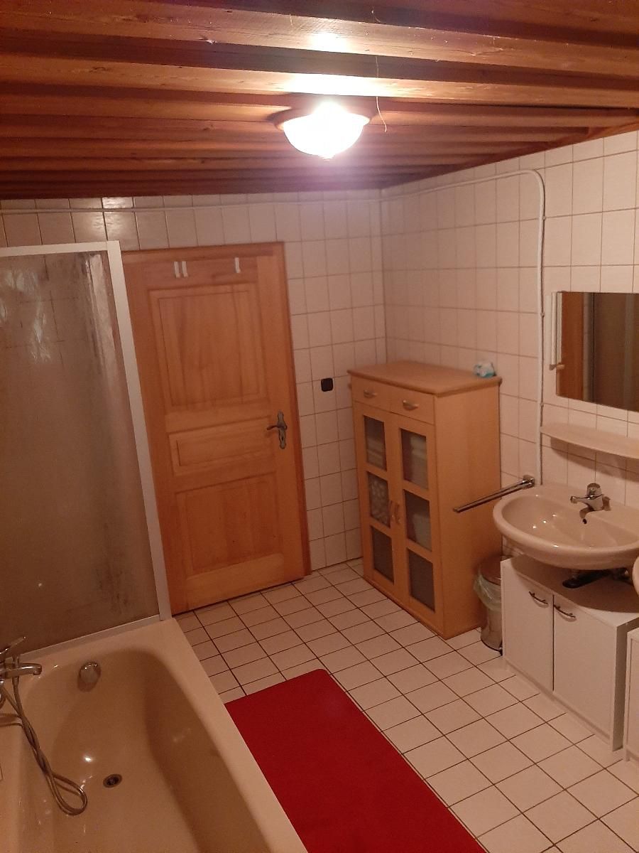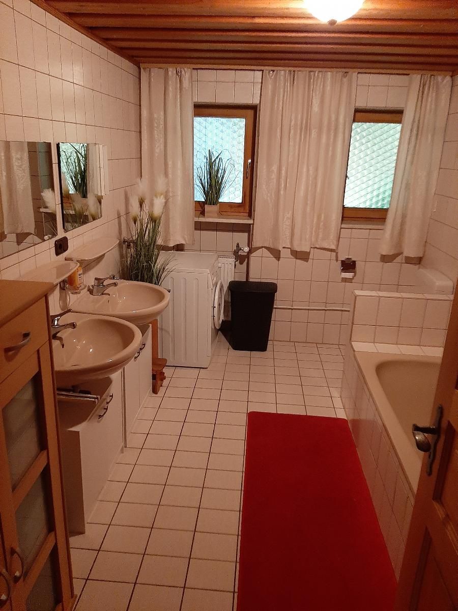 - Badezimmer (Dusche, Badewanne, Doppelwaschbecken, WC und Waschmaschine)