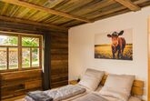 Einen erholsamen Schlaf garantieren in den beiden Doppelzimmern ein Massivholzbett aus Eiche und im Vierbettzimmer zwei Etagenbetten aus massivem Kiefernholz, die sowohl für Kinder als auch Erwachsene hohen Komfort bieten.