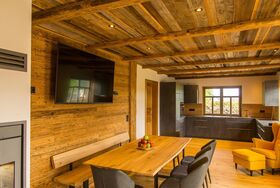 Gebaut und ausgestattet wurde das Chalet im Bayerwald-Stil unter Verwendung von handgehauenen Balken und verwitterten Stadl-Brettern.