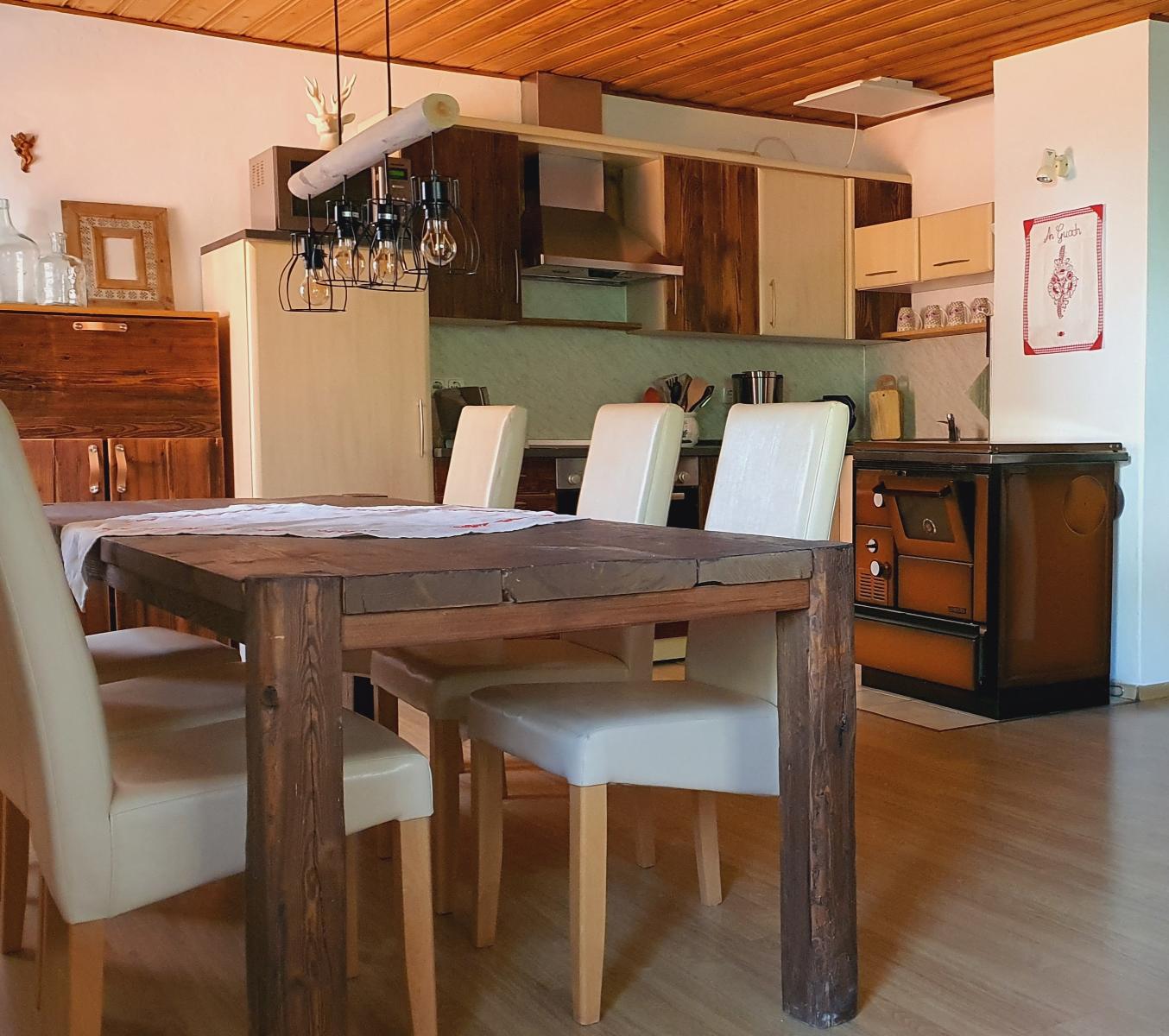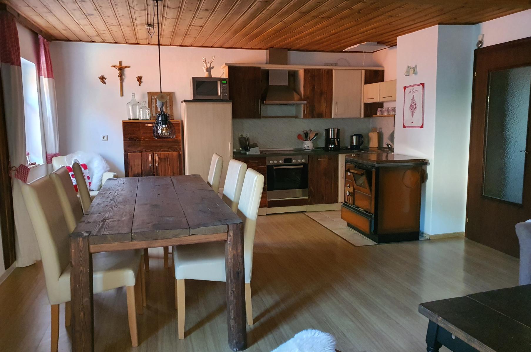 1 große Wohn- und Essküche ist der gemütliche Mittelpunkt Ihres Urlaubsdomizils, der große schwere Holztisch bietet genügend Platz