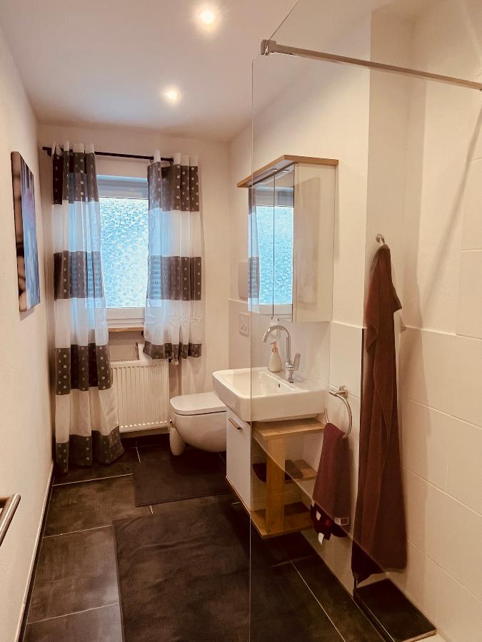 Bad mit Dusche und WC (Handtücher sowie Duschtücher vorhanden).