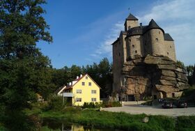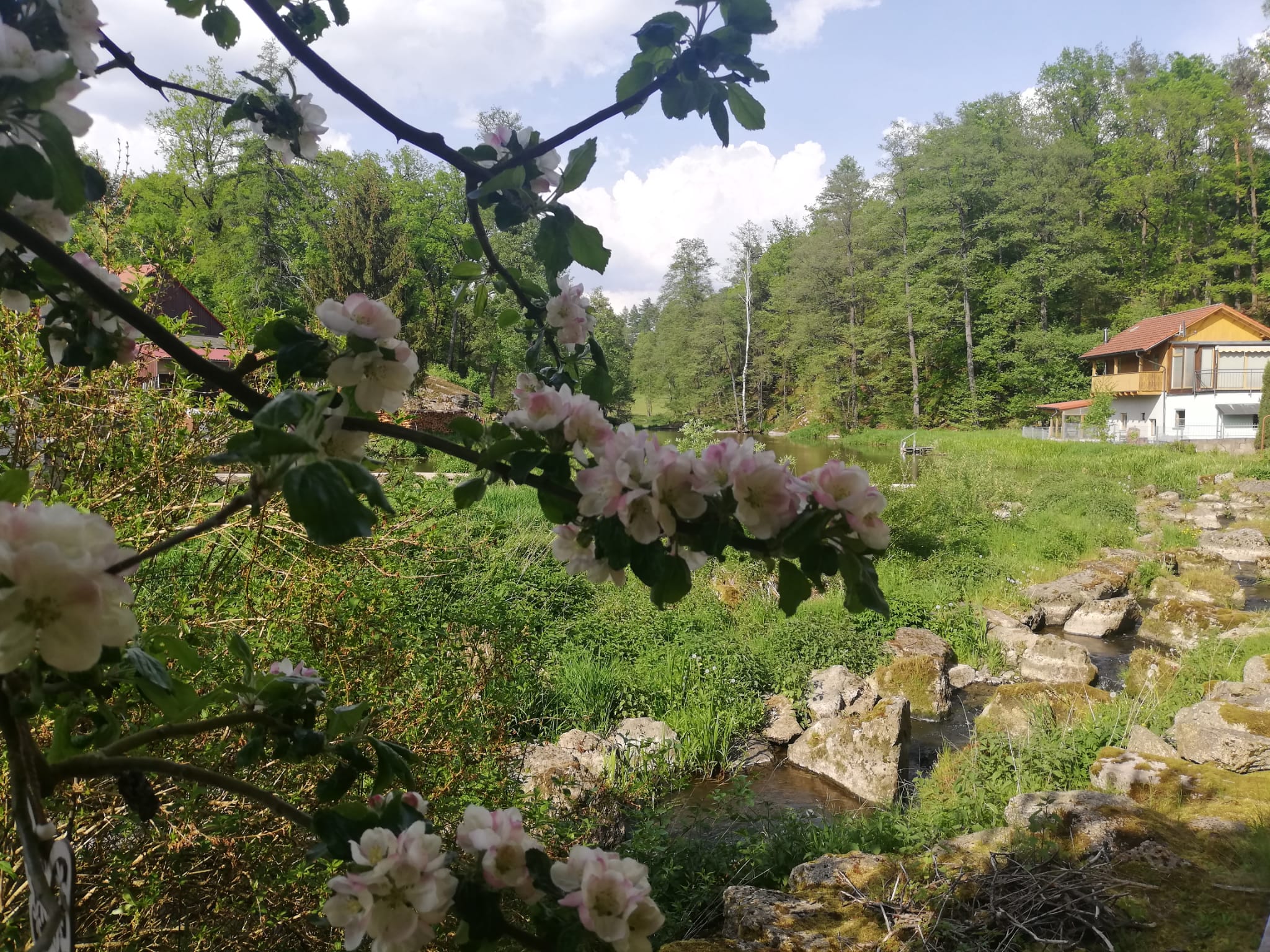 Unsere Ferienwohnung befindet sich im Erdgeschoss unseres Hauses. Das Haus liegt idyllisch direkt am Ufer der Waldnaab und unterhalb der Burg Falkenberg. Man ist in unmittelbarer Nähe zum Ortskern. Edeka-Läden mit Bäckerei oder Metzgerei, Zoiglwirtschaften und Gaststätten sind bequem zu Fuß zu erreichen.