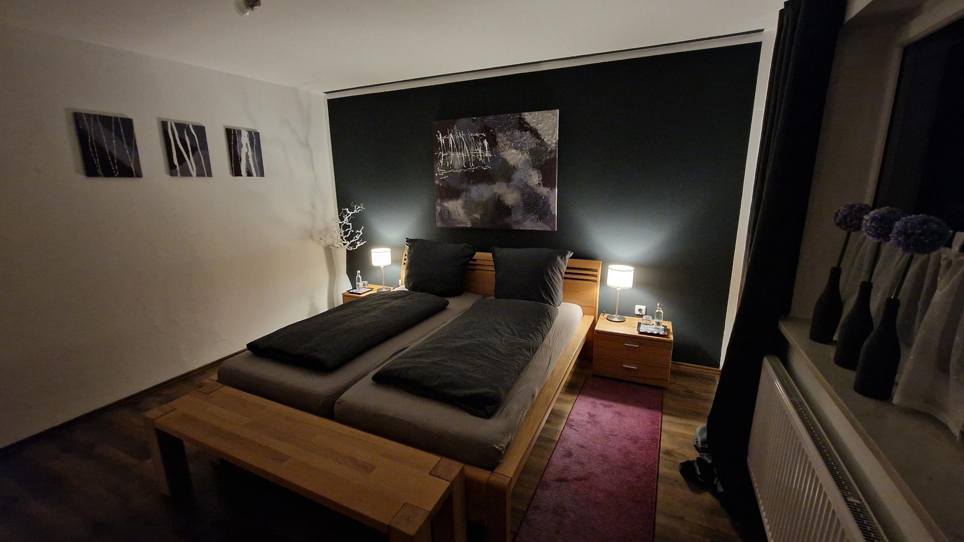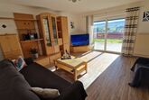 Die Ferienwohnung hat eine voll ausgestattete Küche, Ess- und separates Wohnzimmer mit Smart-TV und Sofa mit Schlaffunktion. Großem Schlafzimmer mit Doppelbett (2 Pers.), Badezimmer mit Dusche und Badewanne, sowie einer Waschmaschine. Desweiteren einen Sportraum bzw. ein zweites Schlafzimmer mit einem 140cm Doppelbett und einem Einzelbett (3 Pers.) und natürlich eine separate Toilette. Eine abschließbare Garage mit Lagermöglichkeit für Fahrräder u.ä. steht den Gästen ebenso wie die große Terrasse mit weitläufiger Liegewiese und einem großem Garten mit einer luxuriösen Outdoorlounge zur Verfügung.