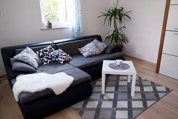Unsere helle, gemütlich eingerichtete 2 Zimmer-Ferienwohnung befindet sich in zentraler Lage von Maroldsweisach, im Naturpark Haßberge. Die neu renovierte 56 m² Wohnung im Erdgeschoss verfügt über ein Schlafzimmer mit Doppelbett, Wohnzimmer sowie eine voll ausgestattete Küche mit Essecke. Küchen- und Bettwäsche sowie Handtücher und Föhn werden gestellt.