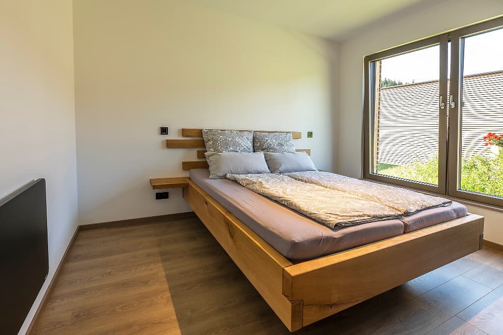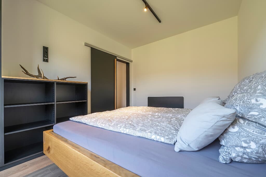 1 großes, helles Schlafzimmer mit einem Doppelbett und großzügigem Schrank. Schlafcouch für weitere 2 Personen im Wohnbereich. Bettwäsche wird gestellt. Auf Anfrage stellen wir auch ein Babyreisebett.