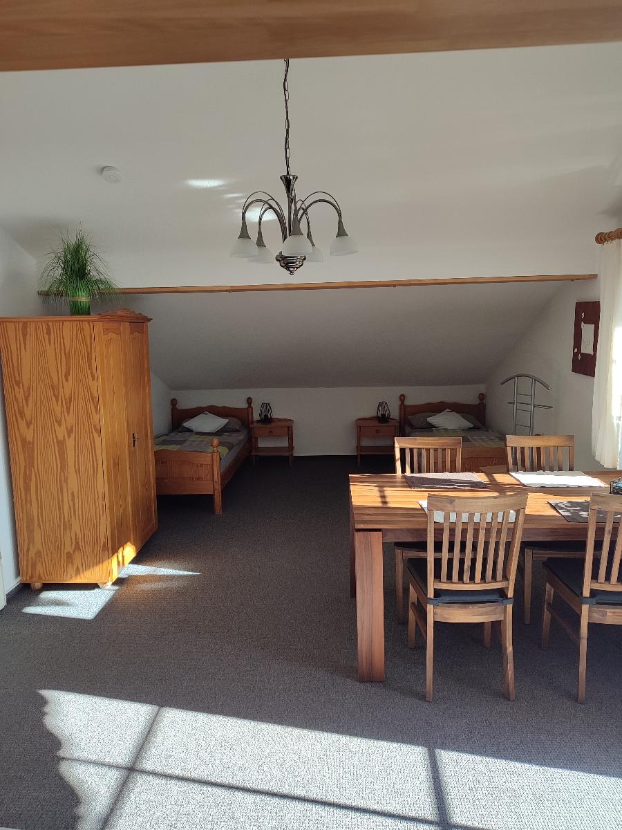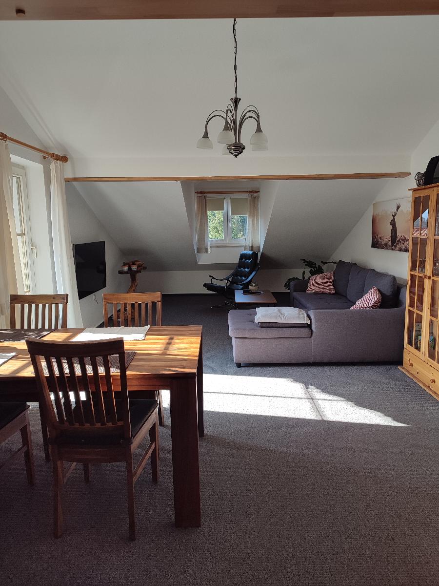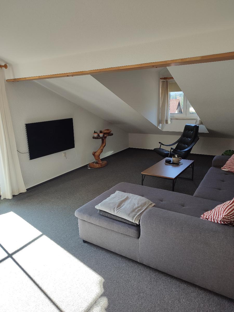 Die Ferienwohnung befindet sich im Dachgeschoss unseres Hauses. Das