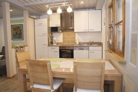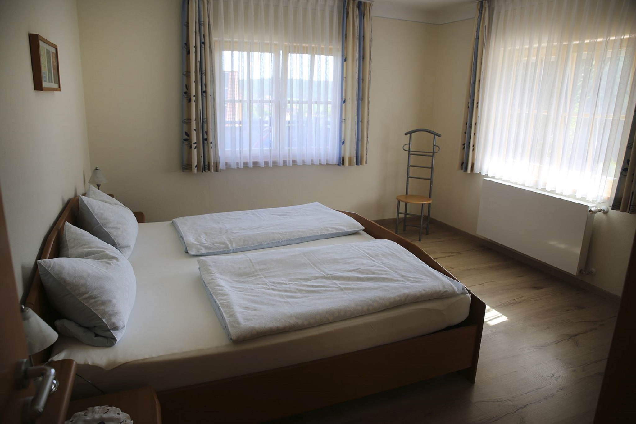 Die Ferienwohnung liegt im Parterre, hat eine Größe von 70 qm und bietet Platz für vier Personen. Die Wohnung wurde 2015 von Grund auf renoviert. Das gemütliche Wohnzimmer mit Sofa und Flachbild-TV lädt zum Verweilen ein. Die komplett ausgestattete Küche mit Geschirrspüler, Kühlschrank inkl. Gefrierfach, Herd, Backofen, Mikrowelle und Wasserkocher lässt keine Wünsche offen. Die Ferienwohnung verfügt über 2 Schlafzimmer mit einem Doppelbett und zwei Einzelbetten. Das Badezimmer mit Dusche, Spiegel und WC rundet das Gesamtbild ab.