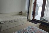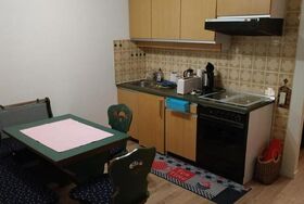 Das 1-Raum-Appartement, befindet sich im unteren Erdgeschoss und ist mit einem Aufzug, als auch zusätzlich über einen Nebeneingang, über den unteren Parkplatz ebenerdig erreichbar. Im 1-Raum - Appartement, befinden sich vier Schlafmöglichkeiten (ein französisches Bett 160 x 200 cm und eine Ausziehcouch 80x190 cm), eine Küchenzeile und das separate Bad, ist mit einer Badewanne, als auch mit einer integrierten Dusche ausgestattet.