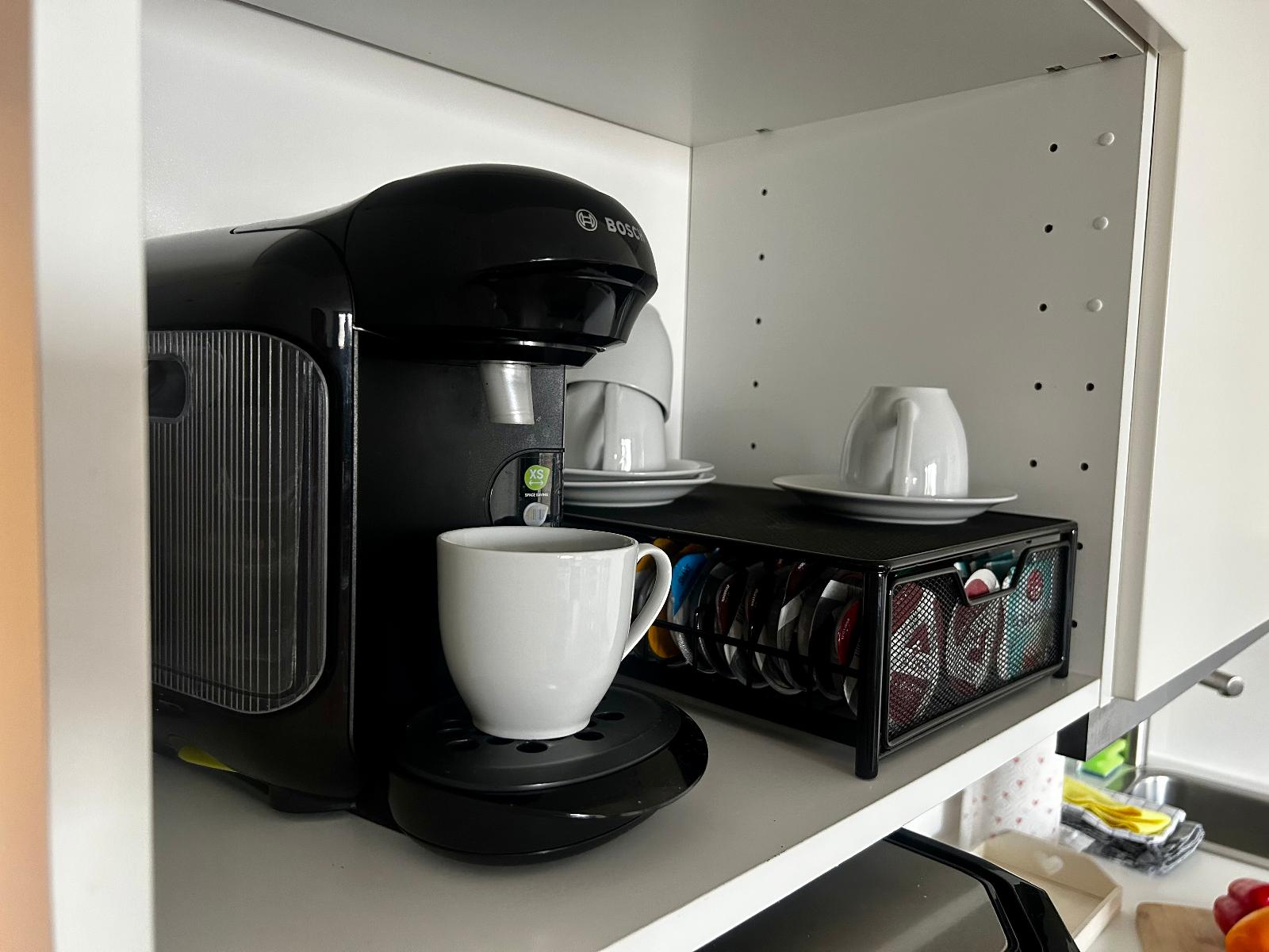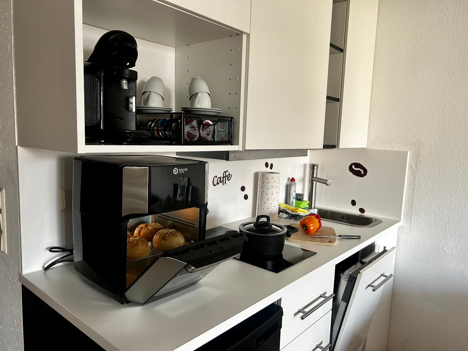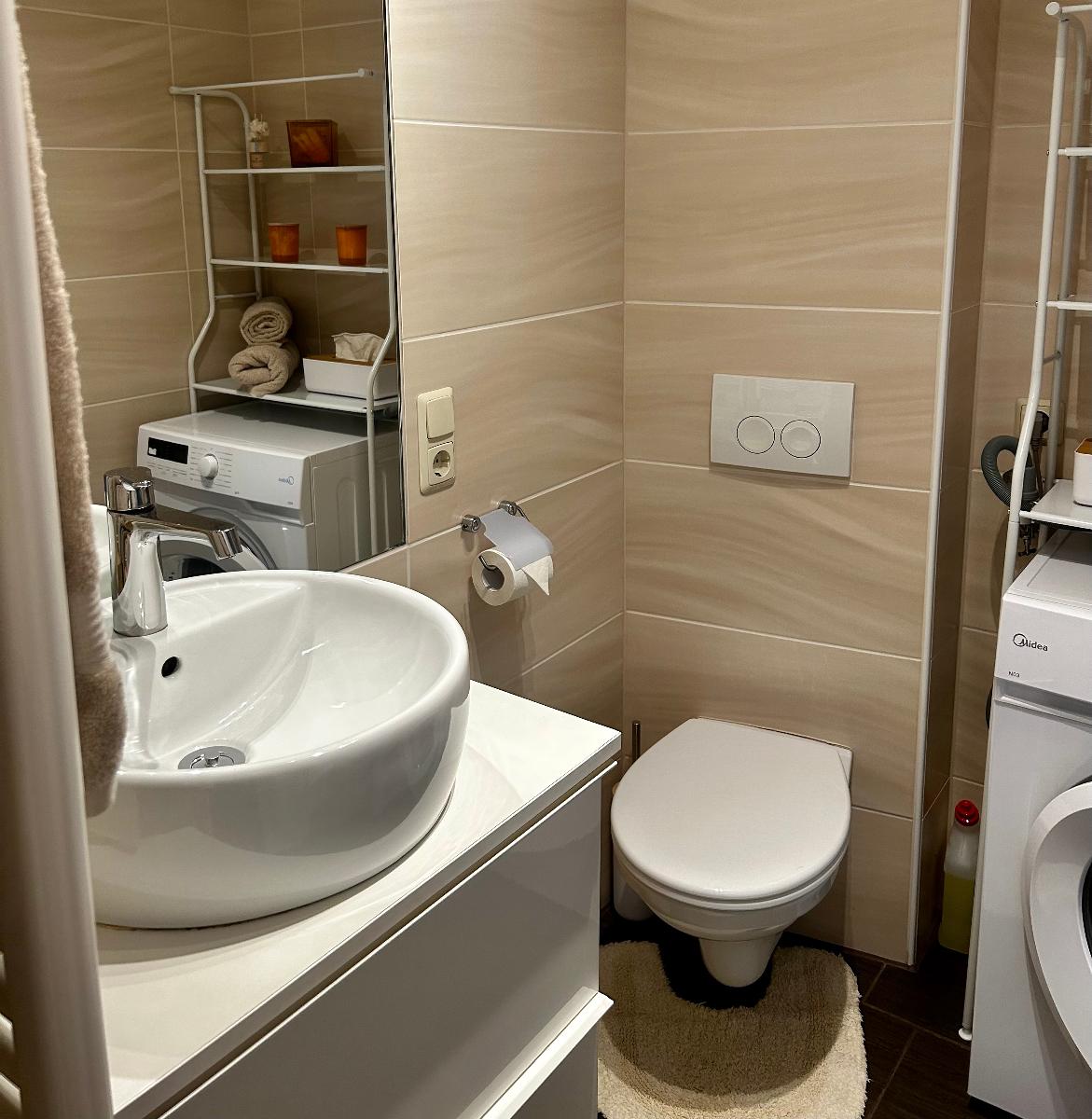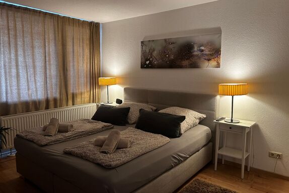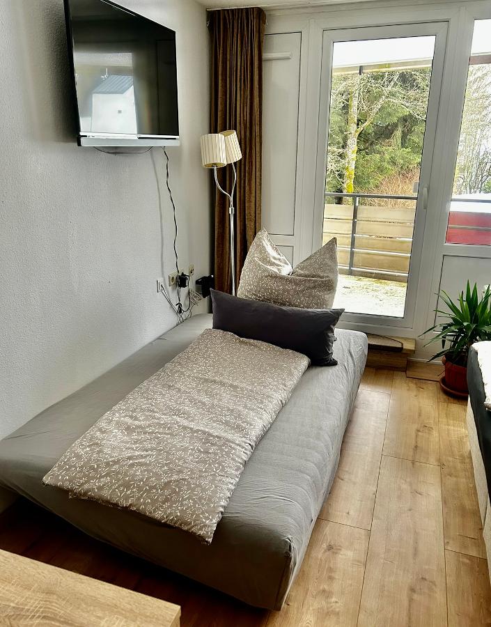 Zum Wohlfühlen braucht es mehr als nur die reine Wohnfläche - es braucht vor allem ein liebevoll gestaltetes Umfeld. Unser Apartment (33qm) wurde von uns mit viel Freude renoviert, liegt im Erdgeschoss und ist für maximal 4 Personen (davon maximal 3 Erwachsene) ausgelegt. Es verfügt über einen Schlafbereich mit Boxspringbett (180x200) und ein Schlafsofa und einen Essbereich (Platz für 4 Personen), 1 Bad mit Dusche, Waschbecken und Toilette, Waschmaschine (Waschmittel usw.), Kosmetik und Hygiene Artikel. Eine voll ausgestattete Küche mit Wasser und Eierkocher, Toaster, Mini-Backofen mit Heißluft, Gästekühlschrank mit Gefrierfach, Tassimo Kaffeemaschine mit Pads, Geschirrspülmaschine mit Tabs, Geschirrtücher, Geschirr, Besteck, Kochutensilien, Gewürze usw. Ein Smart-TV mit NETFLIX Abo und ein Balkon ist vorhanden.