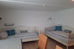 Diese kleine, aber feine Ferienwohnung hat einen Wohn-Schlafraum für zwei Personen mit zwei Einzelbetten 1 x 2 m (+ maximal ein Baby) und ein separates Bad mit Dusche und WC.