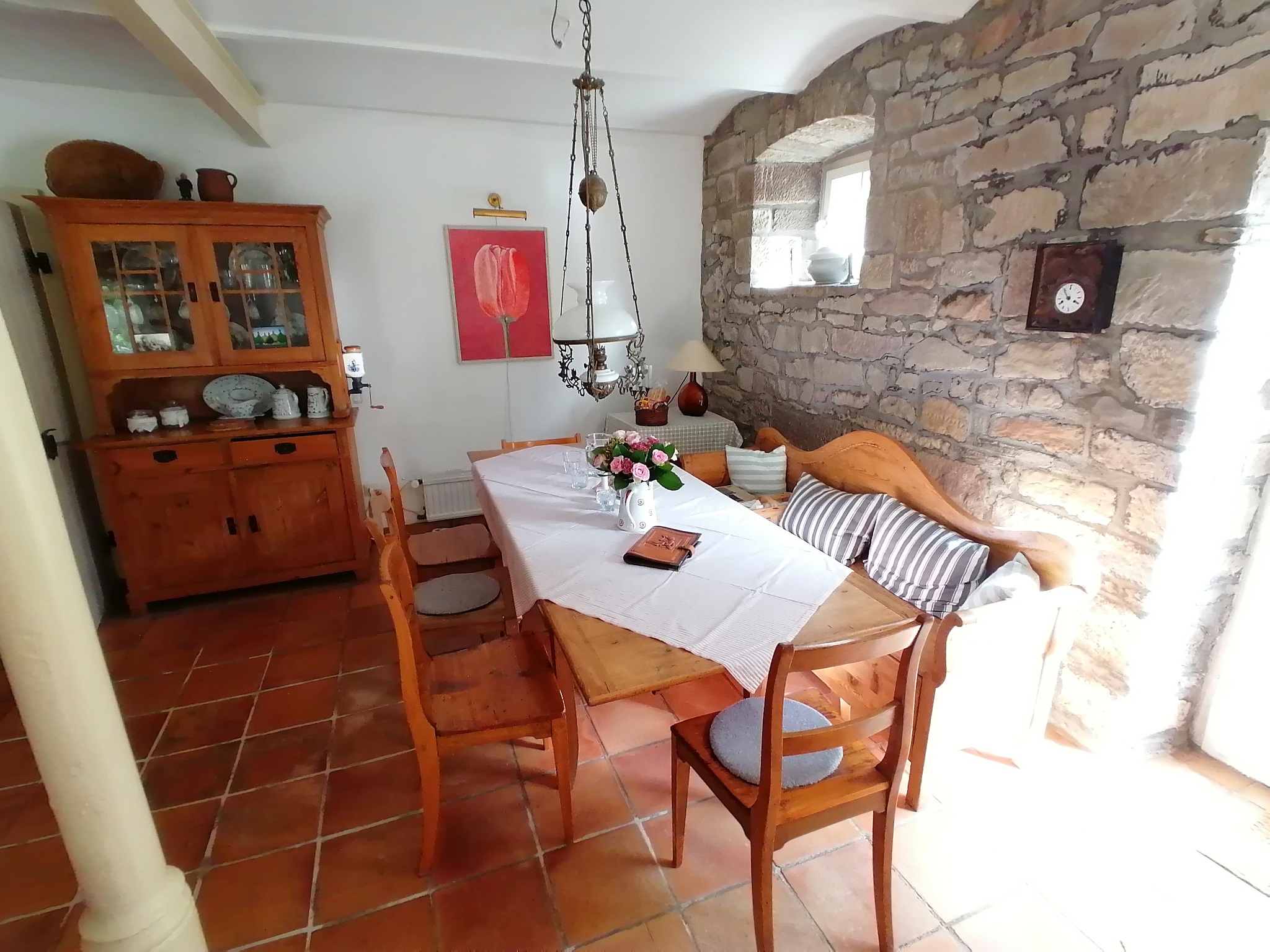 Gönnen Sie sich doch mal eine Auszeit mit einem Ferienhaus der anderen Art. In dem liebevoll eingerichteten ehemaligen Bauernhaus fällt das Abschalten von der Hektik des Alltags nicht schwer. Das Bauernhaus mit 150m² Wohnfläche über zwei Etagen verfügt über einen großen Gemeinschaftsbereich mit offenem Kamin, Sitzecke und Küche sowie zwei Bädern, drei Schlafzimmern und einem Wohnzimmer inklusive kleiner Bücherecke. Die Küche ist voll ausgestattet mit Geschirrspüler, Backofen inkl. Ceranfeld, Kaffeemaschine, Kaffeevollautomat und Toaster. Zieht es Sie nach draußen bietet der weitläufige Garten ausreichend Platz um die Seele baumeln zu lassen oder sportlichen Aktivitäten nachzugehen.