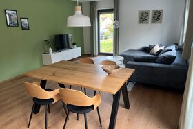Die Ferienwohnungen sind in unterschiedlichen modernen Stilen eingerichtet und bieten ausreichend Platz für Jung und Alt. Weiter sind die Wohnungen mit kostenlosem WLAN und Parkplätzen, sowie E-Ladestationen und großen einladenden Terrassen bestückt. Auch wird derzeit an dem Projekt eines Gemeinschaftsraumes sowie Spielplatz gearbeitet. In diesem können Sie beispielsweise dem Kicker- oder Tischtennis spielen nachgehen.