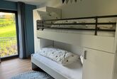 Der lichtdurchflutete Wohnraum mit einer großen Küchenzeile, einem Esstisch sowie einem Schlafsofa und einem Flachbildfernseher führt sie auf direktem Weg zur großflächigen Terrasse. Dort können Sie den ganzen Tag über Sonne tanken. Ein weiteres Highlight in dieser Wohnung ist der Balkon, den man über das Erwachsenenschlafzimmer erreicht. Das Schlafzimmer ist mit einem Boxspringdoppelbett und einem großen Wandschrank ausgestattet. Das Kinderzimmer neben dem Schlafzimmer beinhaltet ein Stockbett. Das Badezimmer mit Fliesen in Holzoptik ist mit einem WC, einem Waschbecken sowie einer ebenerdigen Regendusche als auch mit Hand- und Badetüchern ausgestattet. Die Küche impliziert eine Kühl- Gefrierkombi, einen Herd mit Backrohr, einen Geschirrspüler, eine Mikrowelle sowie Kaffeemaschine, Wasserkocher, etc…. Das Geschirr ist ebenfalls vorhanden.