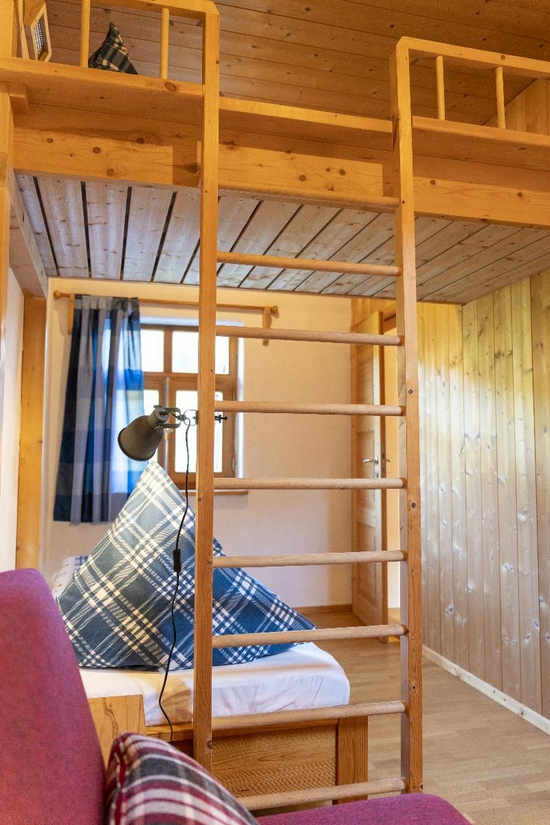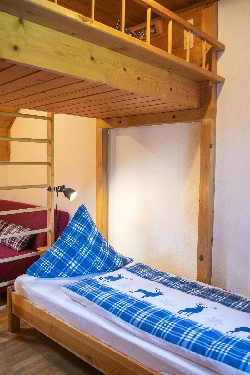 und begehbarem Schrank. Das etwas kleinere Kinderzimmer mit 2 Betten(1 Stockbett) oder Schlafcouch kann durchaus auch von Erwachsenen genutzt werden.