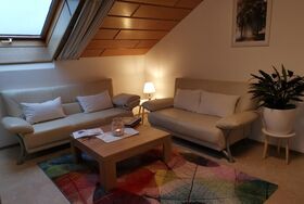 Im Wohnzimmer mit gemütlichem Sofa, Satelliten-TV haben Sie Zeit den Abend ausklingen zu lassen. Mit einem Gesellschaftsspiel, einem guten Buch oder einem Fernsehabend. Auch vom Wohnzimmer aus haben Sie einen Zugang zum Balkon.