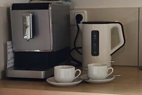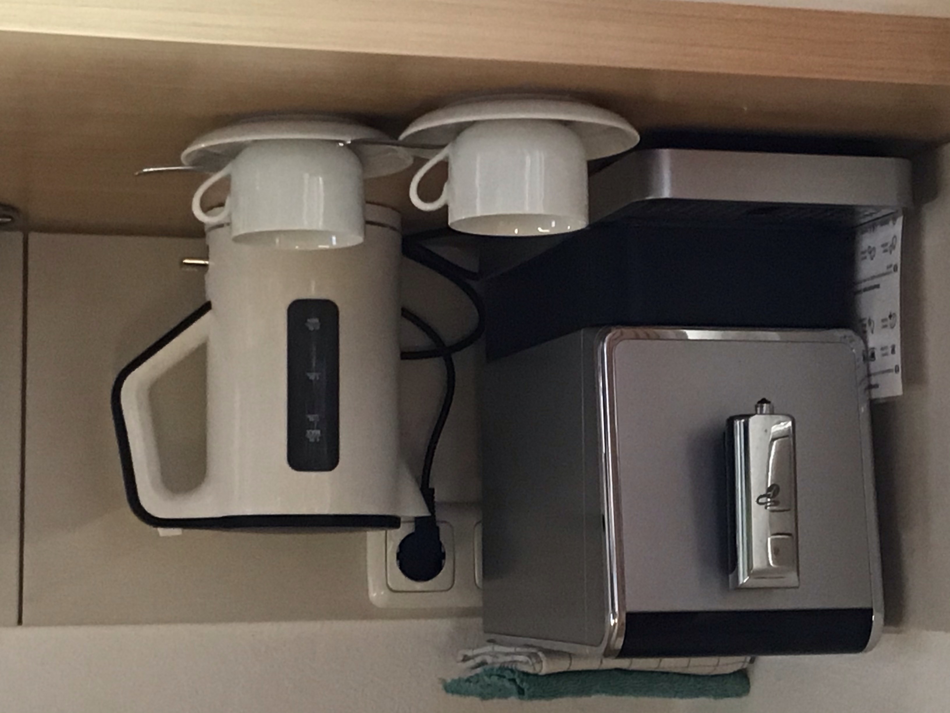 mit Kaffeevollautomat, Wasserkocher, Eierkocher, Toaster, Brotschneidemaschine,