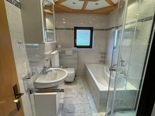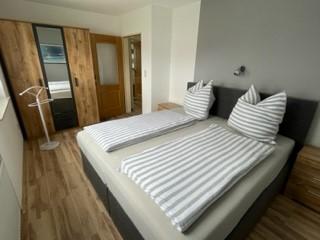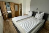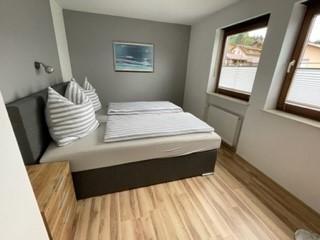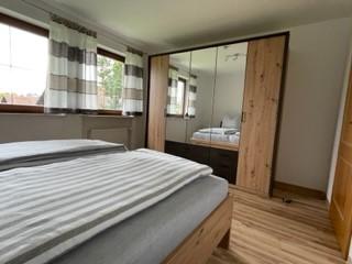 Die Ferienwohnung (85 m²) befindet sich im Erdgeschoss eines Einfamilienhauses. Sie besteht aus einem sehr großen, schön eingerichteten Wohn-/Eßbereich. Die Küche besteht aus einem 4 Plattenherd, Backofen, Kühlschrank, Kaffeemaschine, Wasserkocher und Toaster. Im Wohn-/Eßbereich befinden sich eine Sitzecke (Ledercouch) mit Fernseher und ein Eßtisch mit 4 Stühlen, sowie ein Sideboard. In den Schlafzimmern befinden sich Doppelbetten (1,80 m x 2,00 m), Nachtkästchen und ein Kleiderschrank. Das Einzelzimmer besteht aus 1 Bett (1 m x 2 m), Nachtkästchen und Schrank. Das Badezimmer verfügt über eine Badewanne, Dusche, WC und Waschbecken. Zusätzlich gibt es noch 1 separates WC.