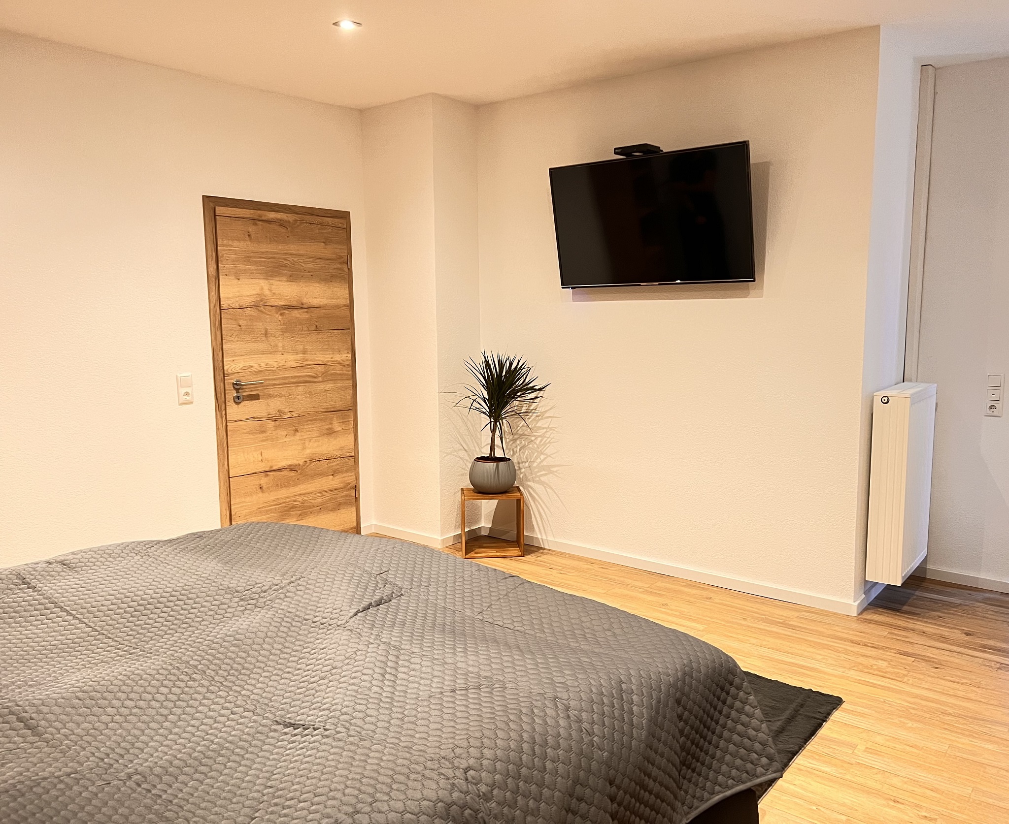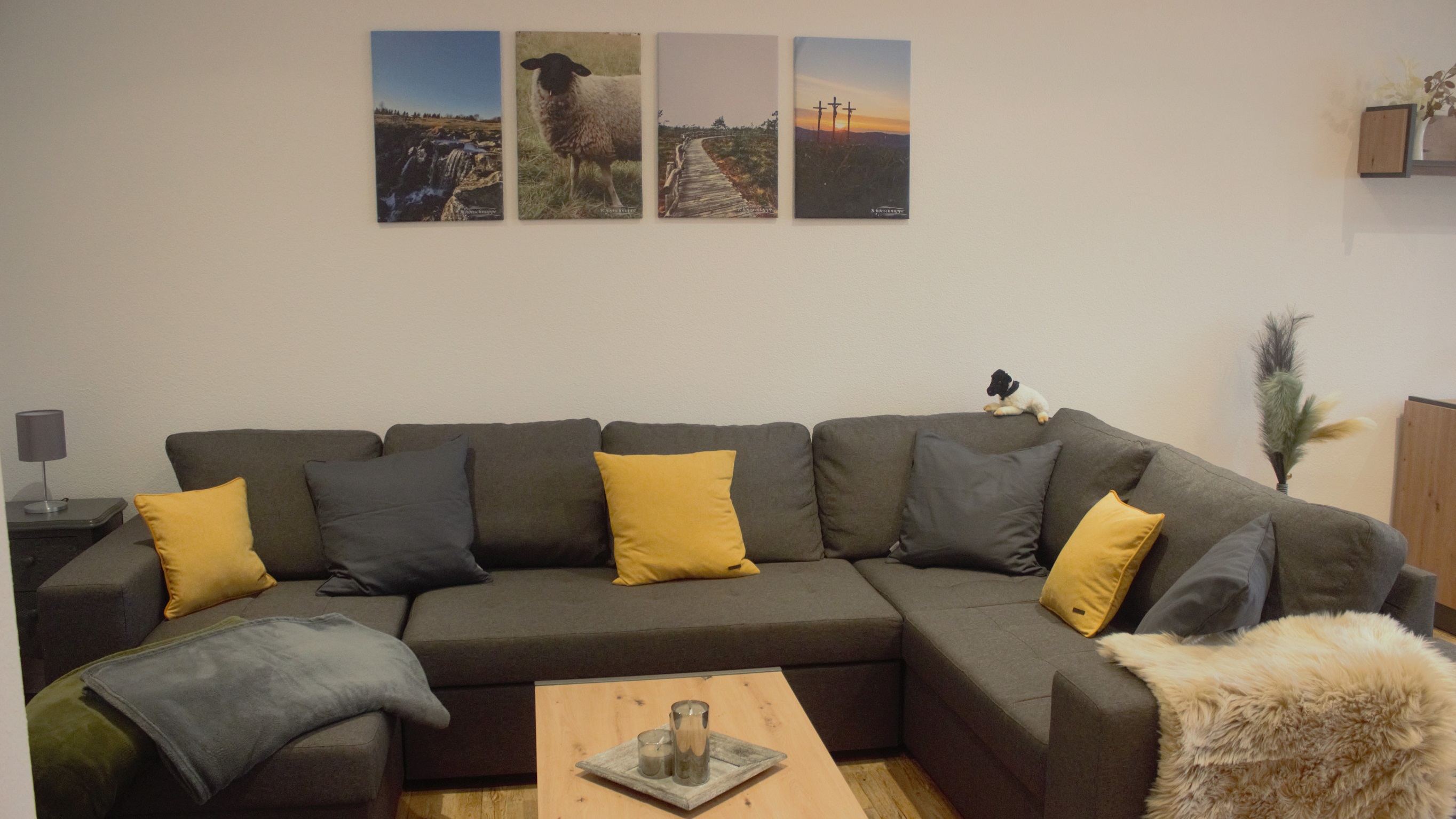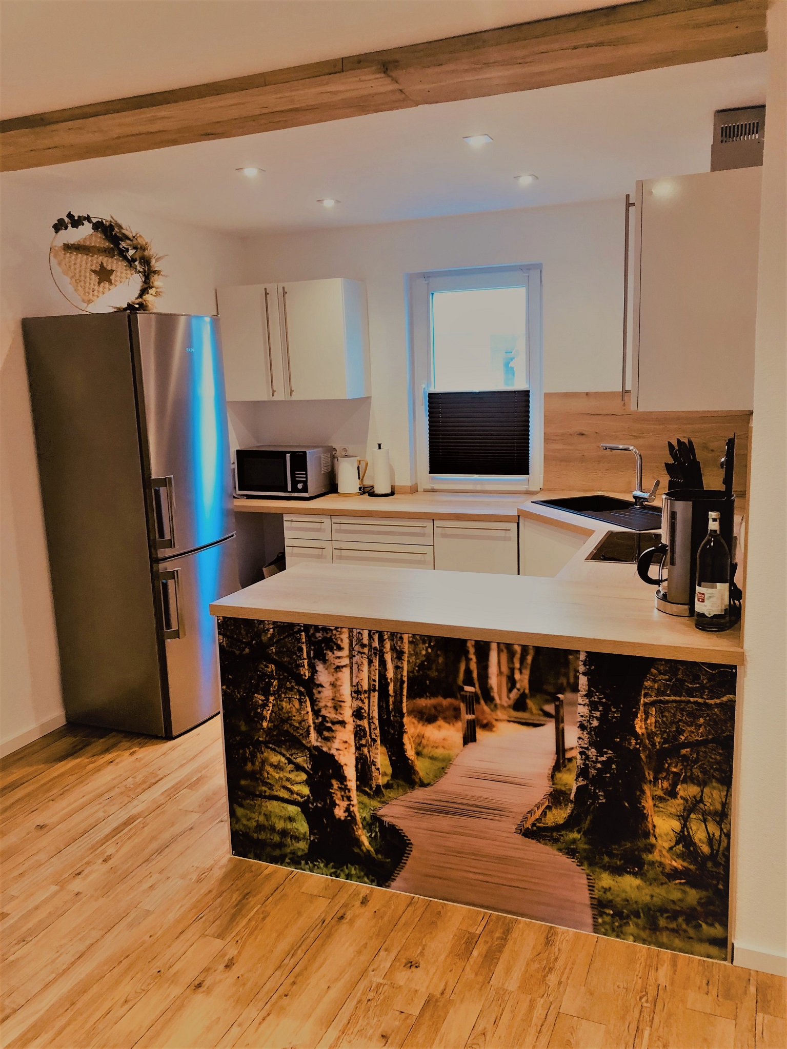 Die Ferienwohnung verfügt über eine komplett eingerichtete Küche, die kaum einen Wunsch übrig lässt. Außerdem können Sie im gemütlichen, großen Wohn-Essbereich die Seele baumeln lassen. Um die Wohnung mit 4 Personen zu nutzen, verfügt das Wohnzimmer über eine bequeme Schlafcouch. Für einen erholsamen Schlaf sorgt ein großes Boxspringbett, in dem Sie die schönsten Träume haben werden. Platz für ein Kinderbett ist im Schlafzimmer genügend vorhanden.