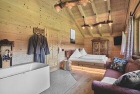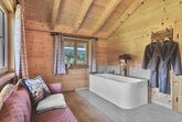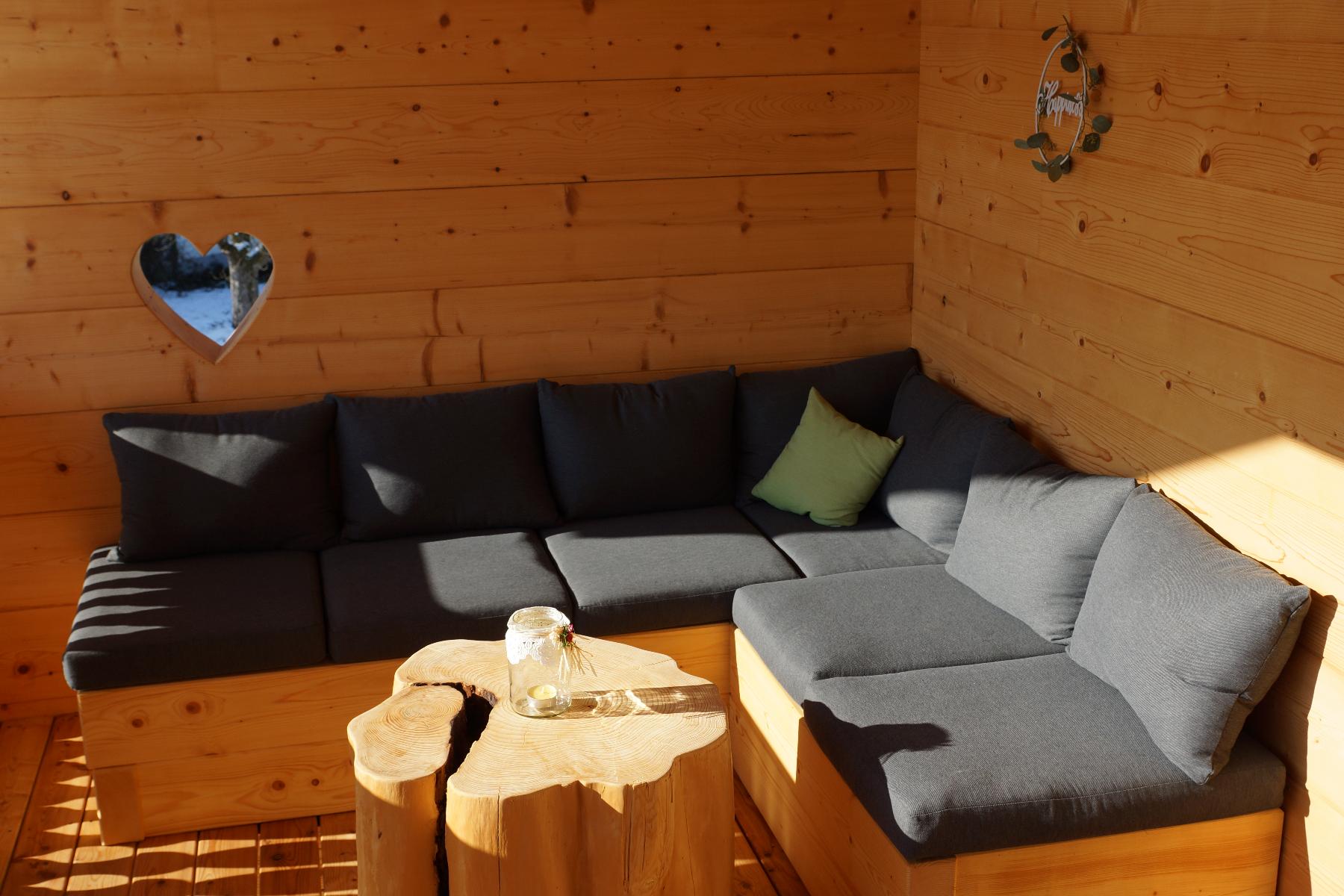 Im Chalet werden Brötchenservice und Frühstückskorb angeboten.