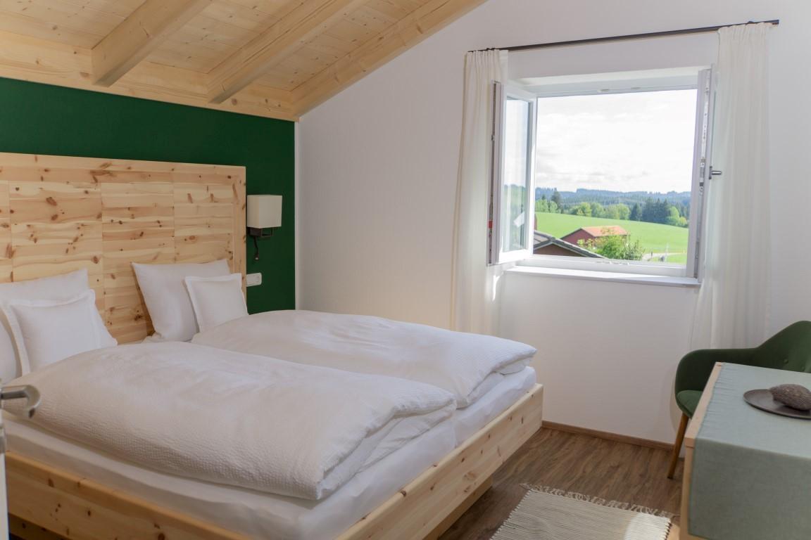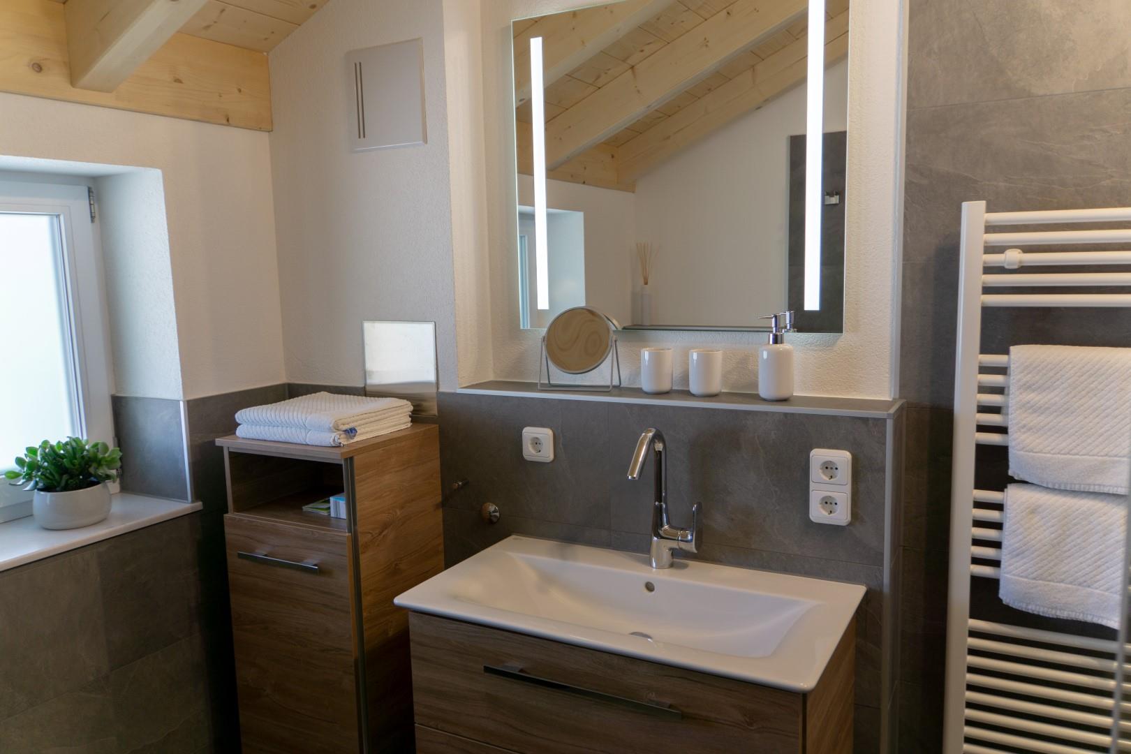 In unserer neu erbauten Ferienwohnung erwartet Sie eine Atmosphäre zum Wohlfühlen. Bei der Ausstattung setzen wir auf die Verwendung von natürlichen Materialien, einen Mix aus traditionell und modern sowie viel Liebe zum Detail. Das Schlafzimmer aus Zirbenholz sorgt mit seinem Duft für ein besonders angenehmes Raumklima - die beste Grundlage für einen erholsamen Schlaf. Der offene und hohe Wohnraum sorgt für Behaglichkeit, ebenso das moderne Badezimmer mit Fenster und bodengleicher Dusche.