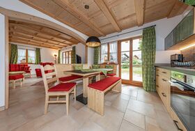Geniesen Sie unsere liebevoll im bayerisch-alpinen Stil eingerichteten Komfort-Ferienwohnungen. Perfekt für erholsame und unbeschwerte Urlaubstage. Freuen Sie sich auf ihren möblierten Südbalkon o. Südterrasse o. Liegewiese mit Bergblick zu Karwendel und Wetterstein und lassen Sie sich Ihre Brotzeit oder Kaffee schmecken.