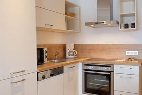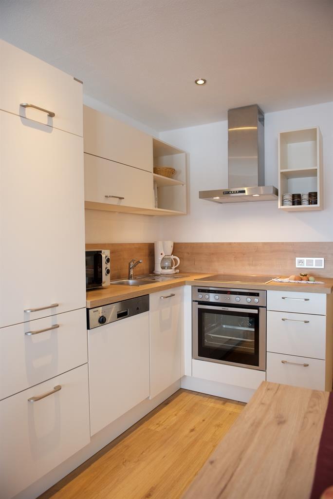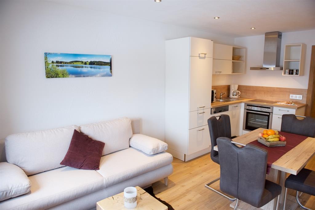 Die geräumige Wohnküche verfügt über eine voll ausgestattete Küche mit einem Essbereich sowie einem gemütlichem Sofa mit FlatTV.