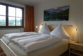 Die Ferienwohnung Schuster befindet sich in der ersten Etage und verfügt über eine komplett ausgestattete Küchenzeile mit Anschluß an den hellen Wohnraum mit Couch und Esstisch. Das separate helle Schlafzimmer ist mit einem Doppelbett und großem Kleiderschrank eingerichet. Weitere zwei Personen finden im Wohnraum auf der Ausziehcouch eine Schlafgelegenheit.