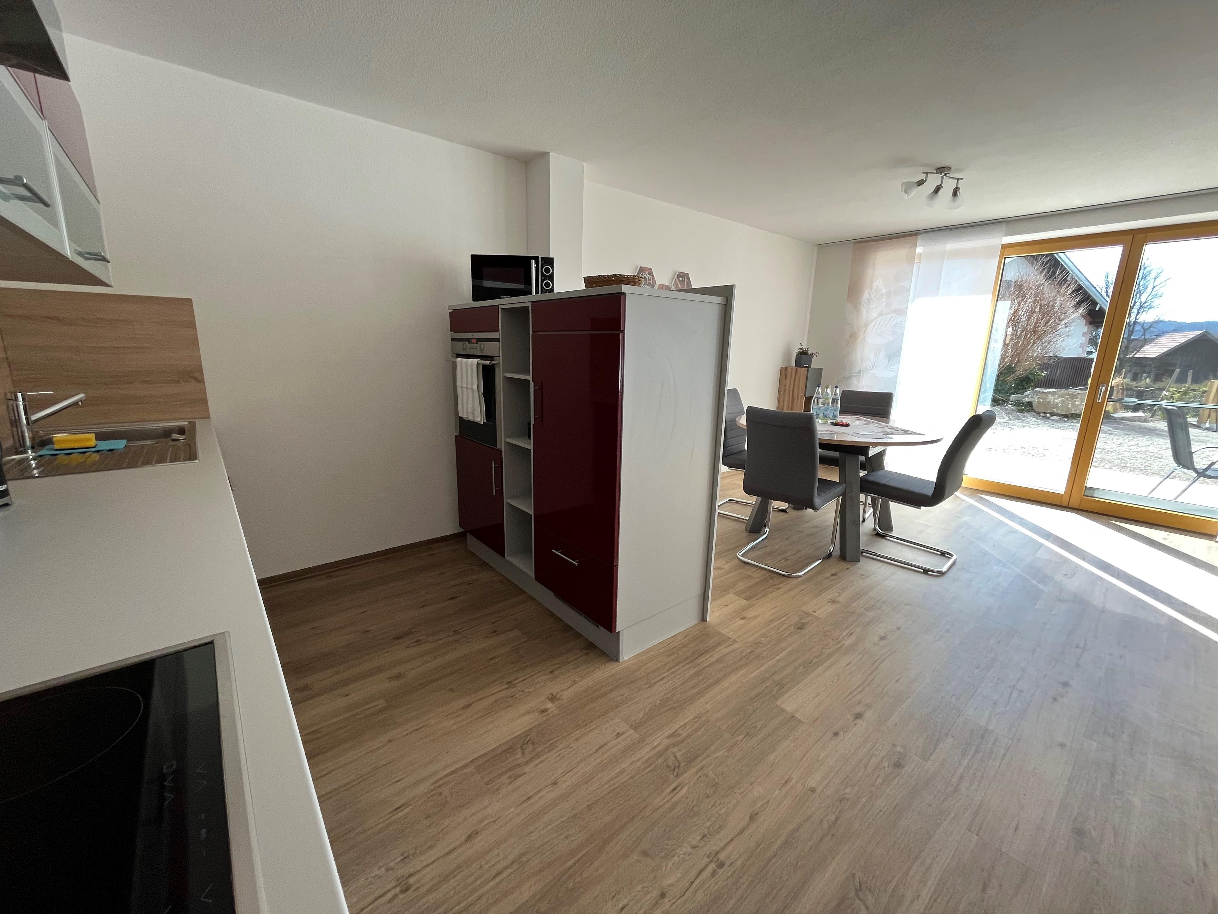 Unsere 82 qm große Ferienwohnung Alte Tenne befindet sich im Erdgeschoß (bei Bedarf mit separatem barrierefreiem Zugang). Durch die sonnige Südlage haben Sie einen schönen Blick auf die Allgäuer Alpen. Die Wohnung besteht aus einer liebevoll eingerichteten Wohnküche, Schlafzimmer und Bad sowie einer kleinen Terrasse. Die Wohnung ist ausgelegt für 2 Personen, für weitere Personen steht im Wohnzimmer ein Schlafsofa zur Verfügung (auf Anfrage).
