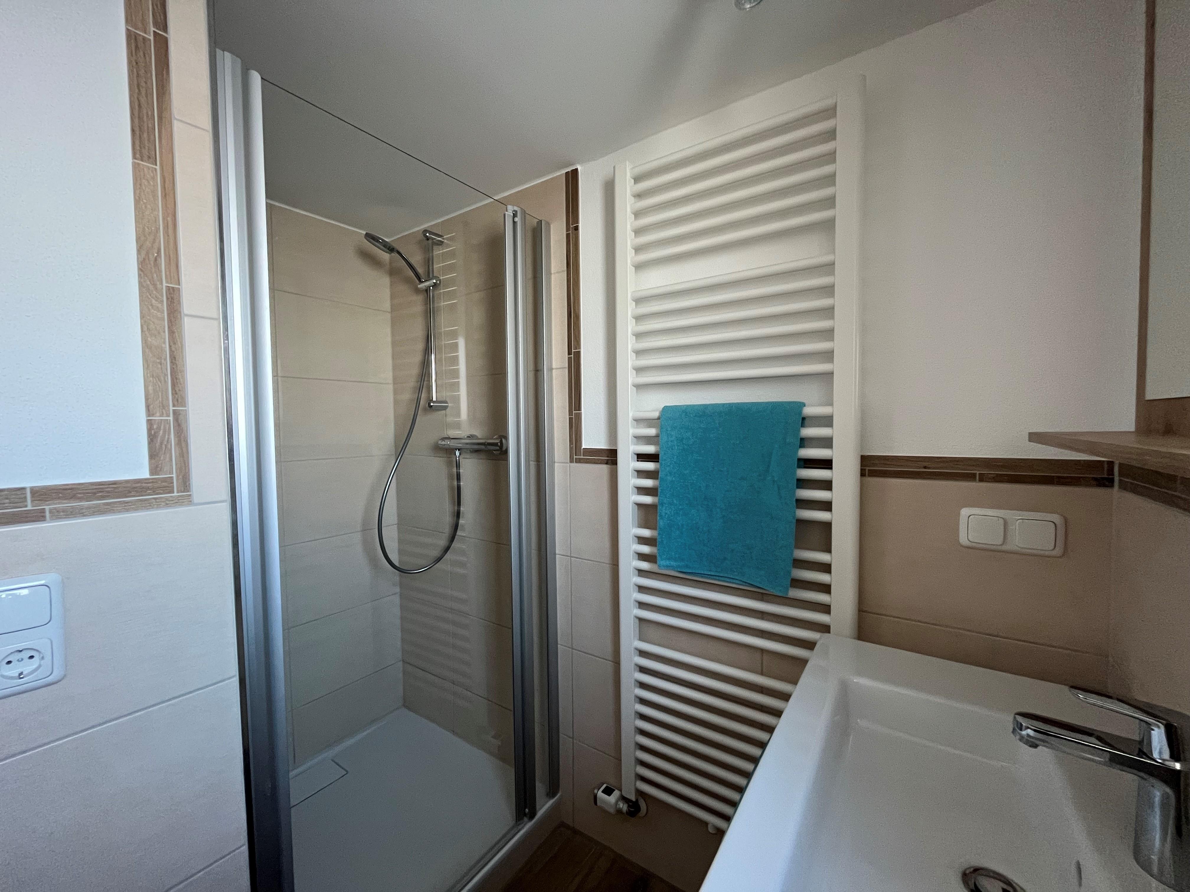 Zimmer und Ausstattung: Es steht ein Schlafzimmer mit Doppelbett und geräumigem Kleiderschrank zur Verfügung, die Küche ist voll ausgestattete mit Kühlschrank inkl. Gefrierfach, Herd (Ceranfeld), Dunstabzug, Geschirrspüler, Backofen, Wasserkocher, Toaster, Kaffeemaschine, Eierkocher, Mikrowelle, Besteck, Geschirr, Gläser, Töpfe und alle gebräuchlichen Küchenutensilien. Ein Flachbild-Fernseher gehört ebenfalls zur Ausstattung dieser Wohnung. Im Badezimmer finden Sie eine Dusche und ein WC.