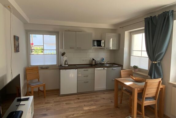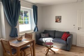 Sehr schöne, neu eingerichtete Ferienwohnung im Erdgeschoss mit eigenem Eingang und kleinem Freisitz, Wohnküche, seperates Schlafzimmer, Bad mit DU/WC und PKW-Stellplatz.