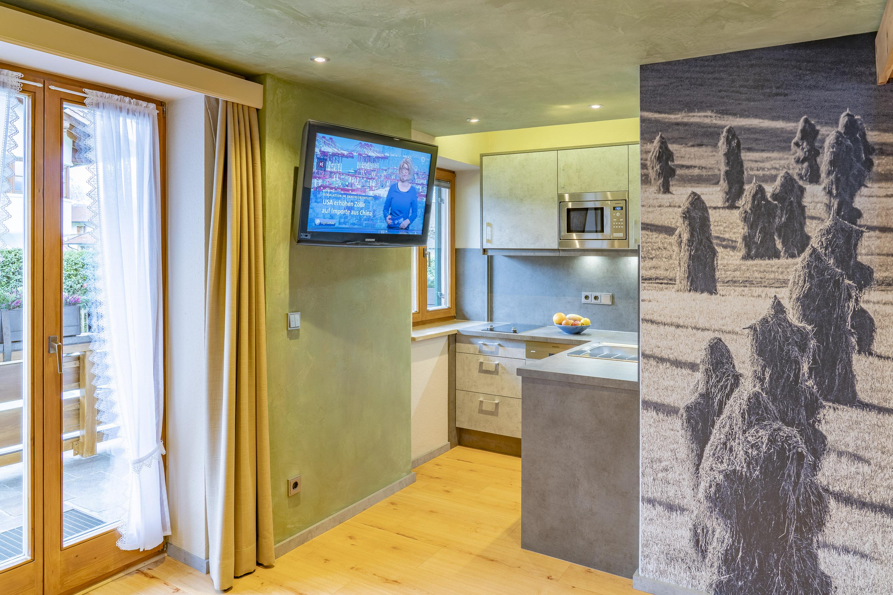 Treten Sie ein in unsere liebevoll gestaltete Ferienwohnung Heublume – benannt nach einer der schönsten Wiesenblumen unserer Bergwelt. Die Wohnung empfängt Sie mit dem Duft echter Heublumen, eingefangen in edlen Tapeten, die Sie gedanklich auf eine blühende Alm entführen – ganz ohne Wanderschuhe.