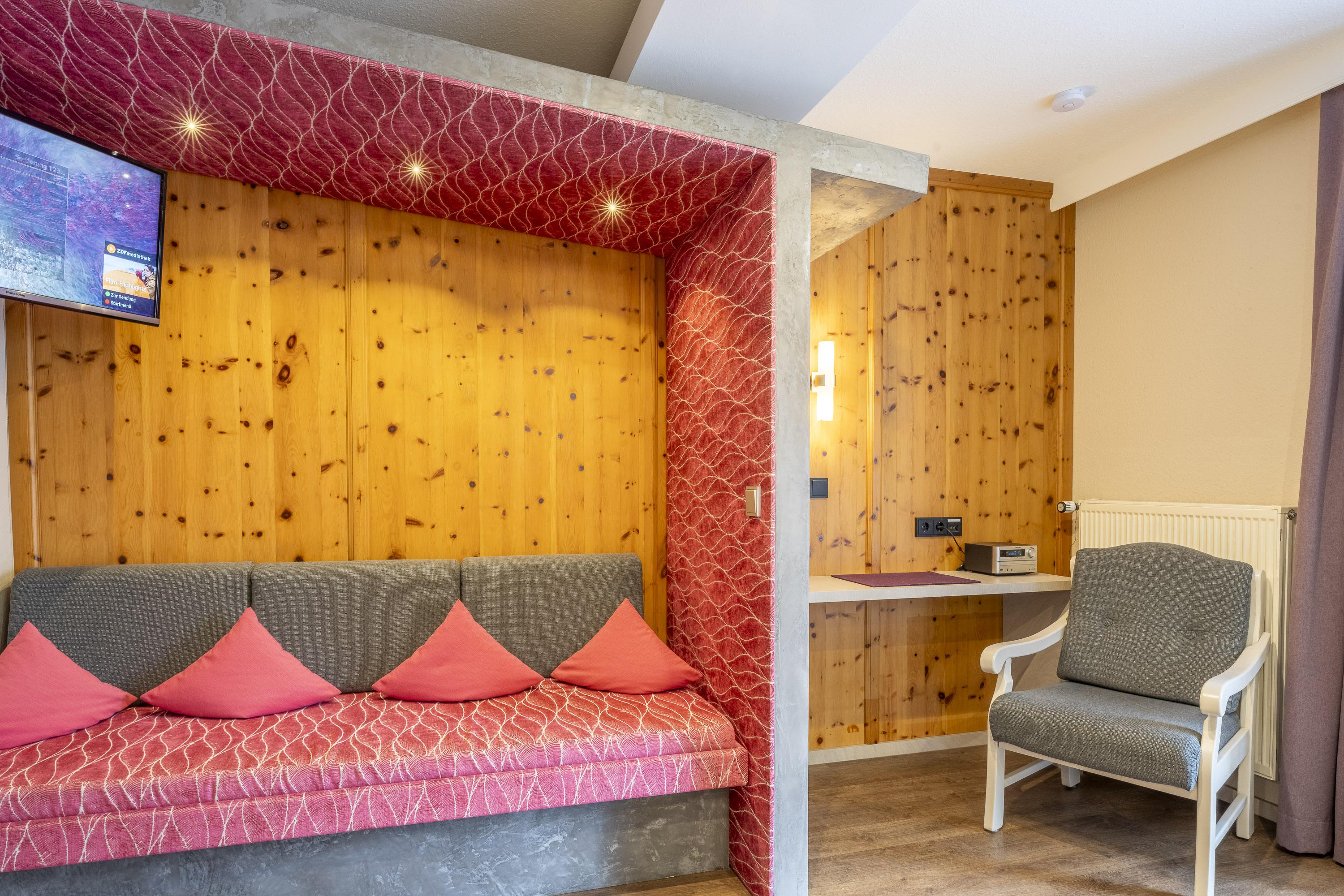 Nach einer erlebnisreichen Tour durch die Alpen sinken Sie entspannt in das komfortable Boxspringbett aus edlem Bergahornholz – umgeben von natürlicher Ruhe und liebevoll gestalteten Details.