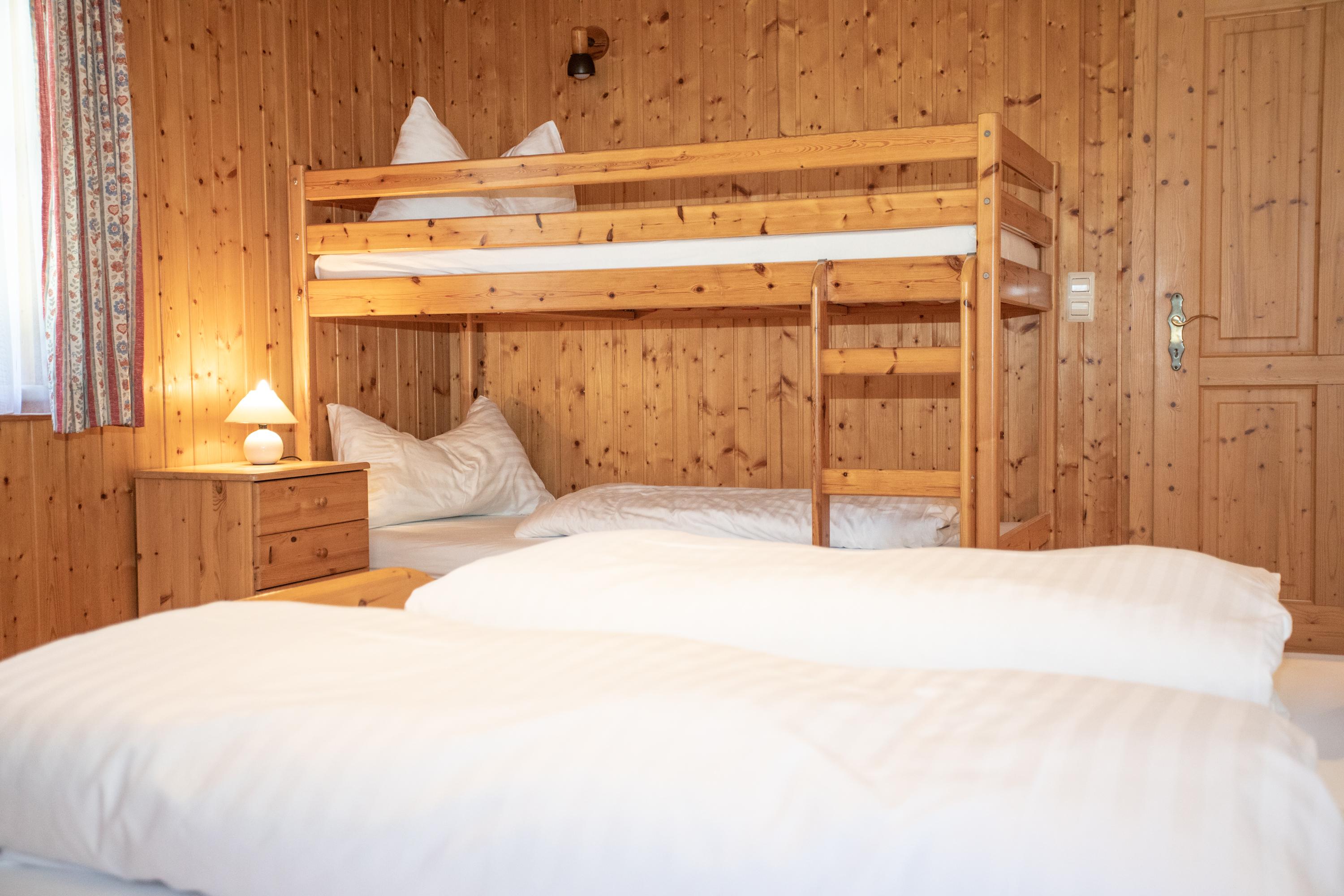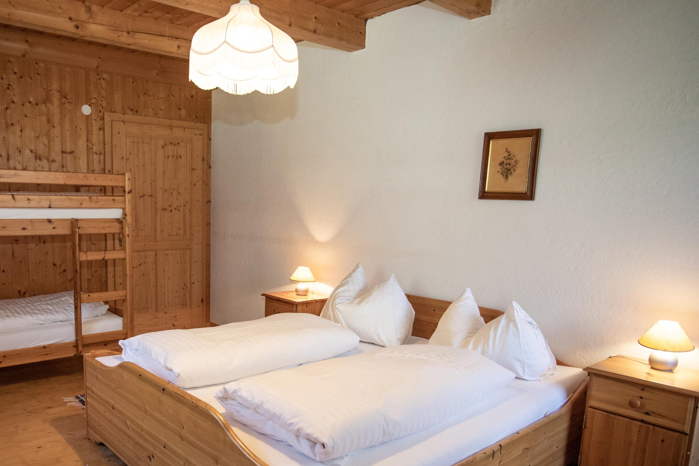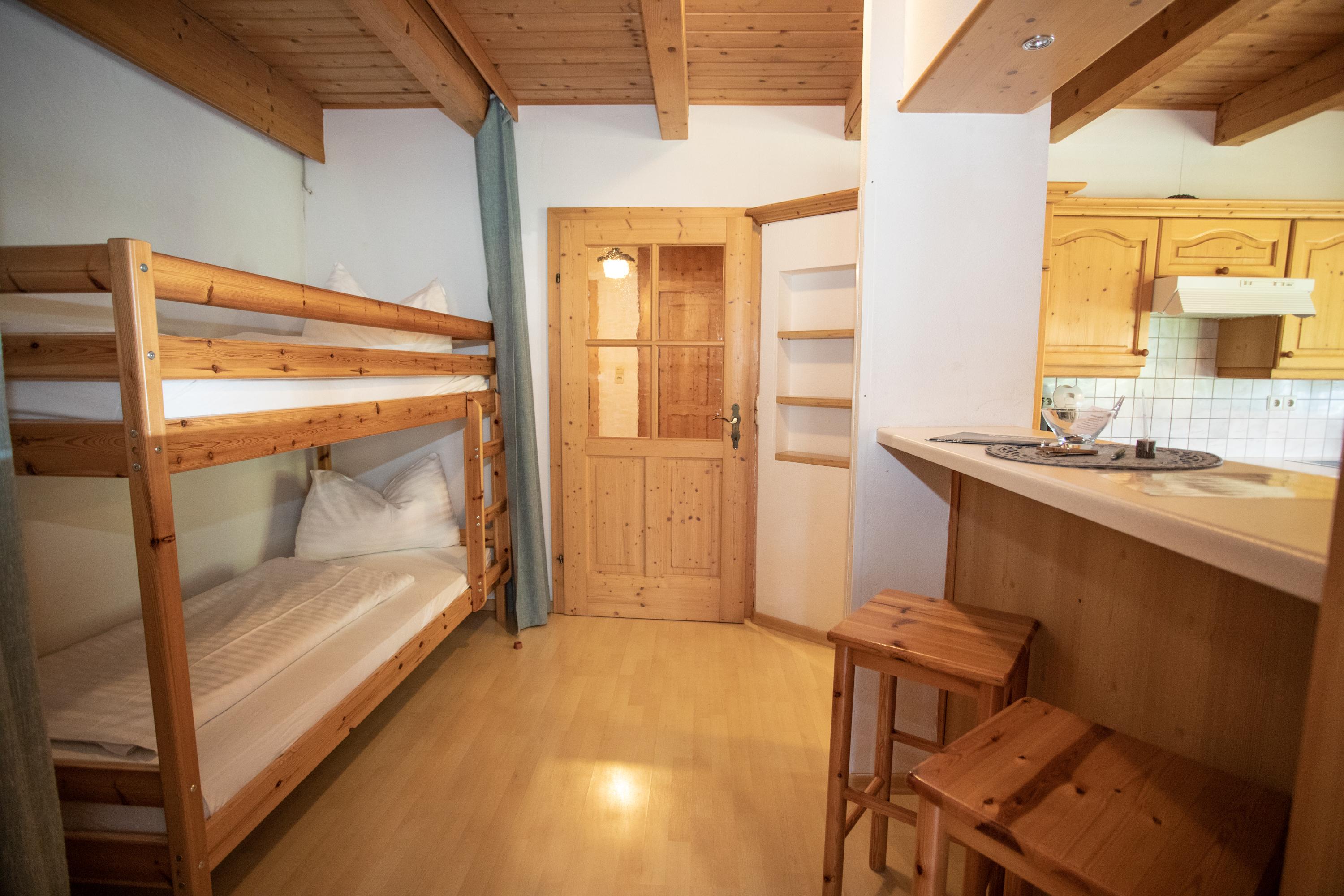 großzügiges Appartement mit zwei Schlafzimmern und Schlafnische im Küchenbereich (1 Schlafzimmer mit Doppelbett und Stockbett, 1 Schlafzimmer mit Doppelbett, 1 Stockbett in Schlafnische), Bad, separates WC, voll ausgestattete Küche sowie Terrasse mit direktem Gartenzugang